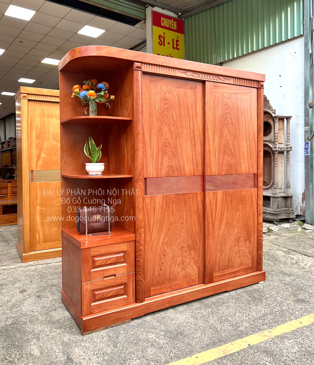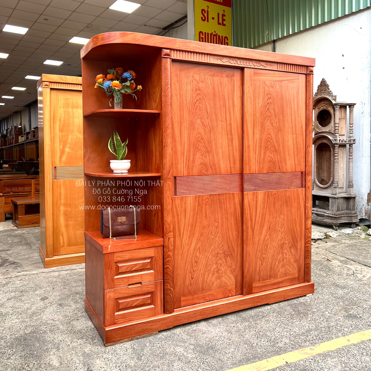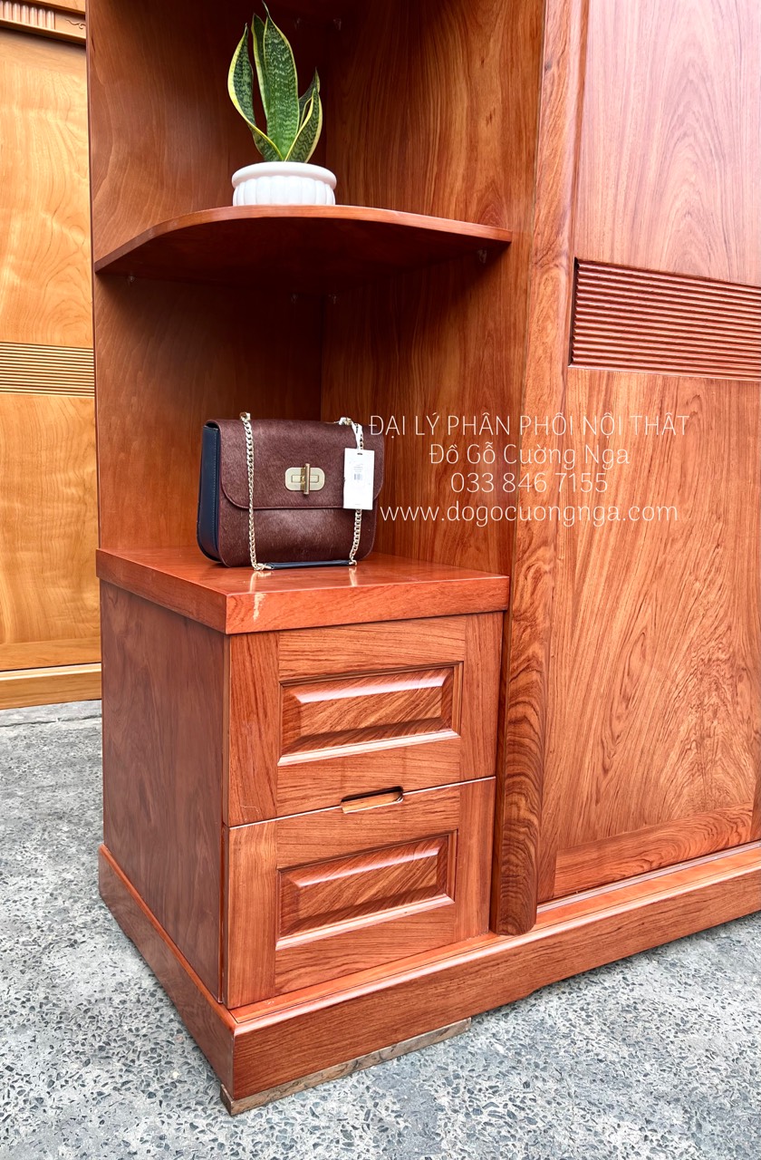 Tủ quần áo gỗ Hương Đá cánh lùa kèm góc