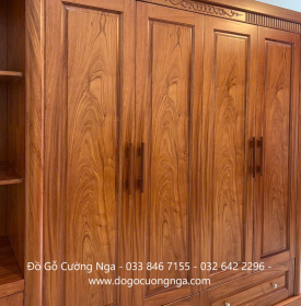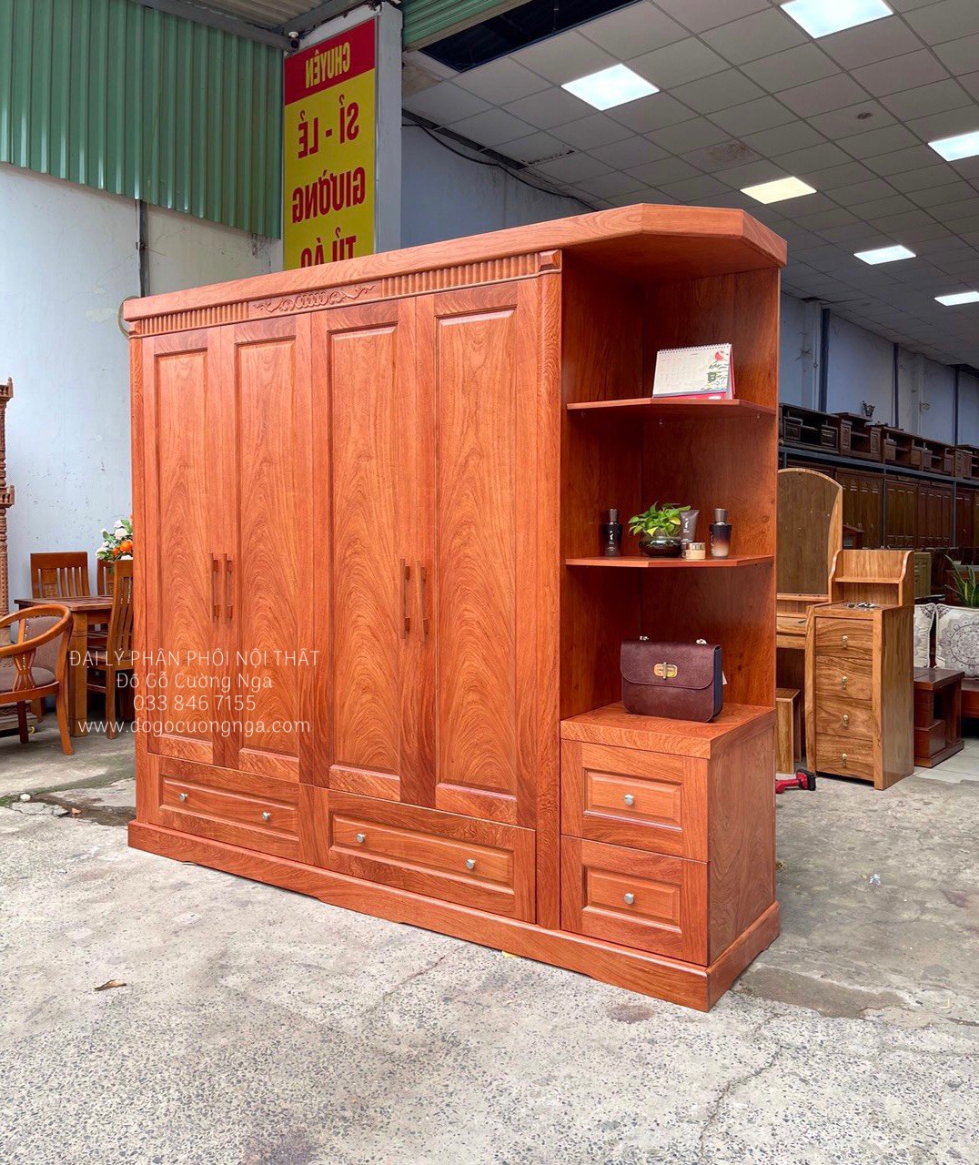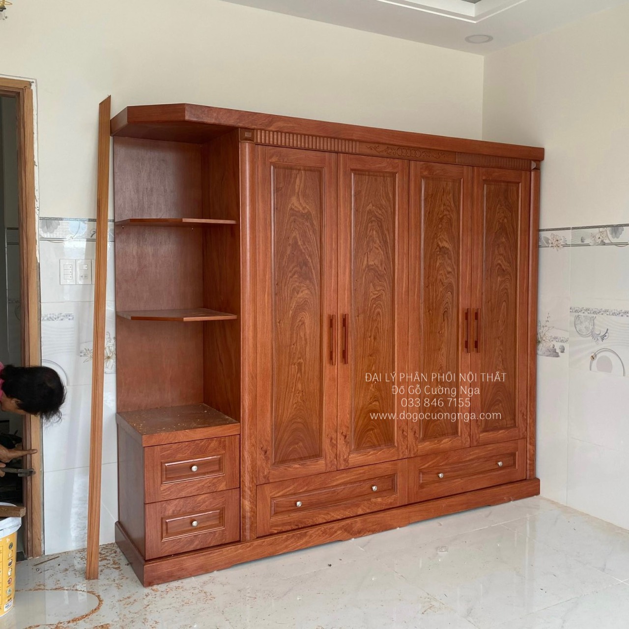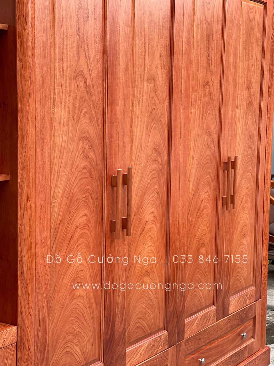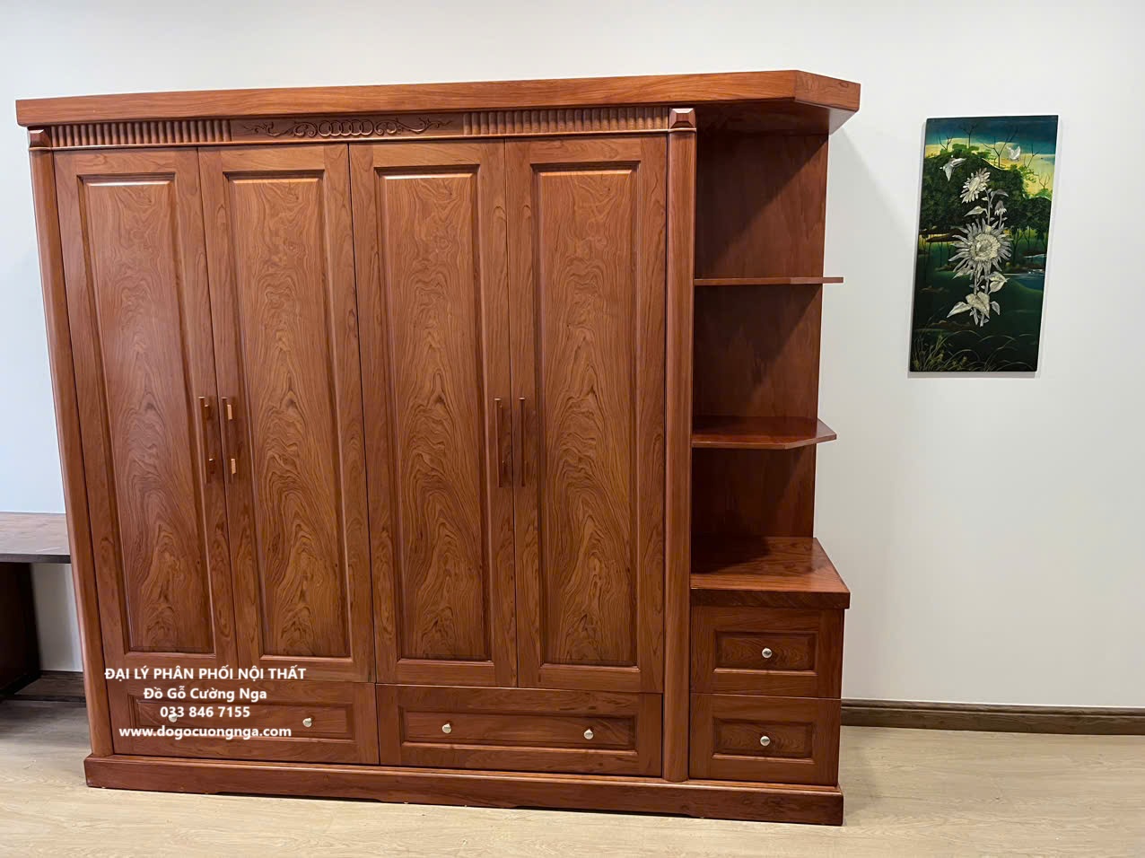 Chi tiết tủ áo gỗ hương đá 4 cánh góc trang trí