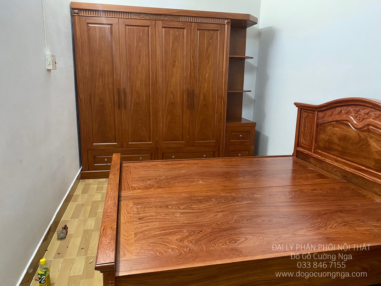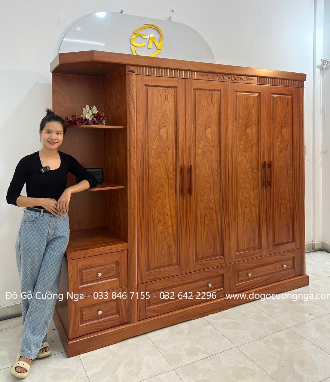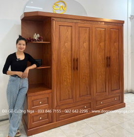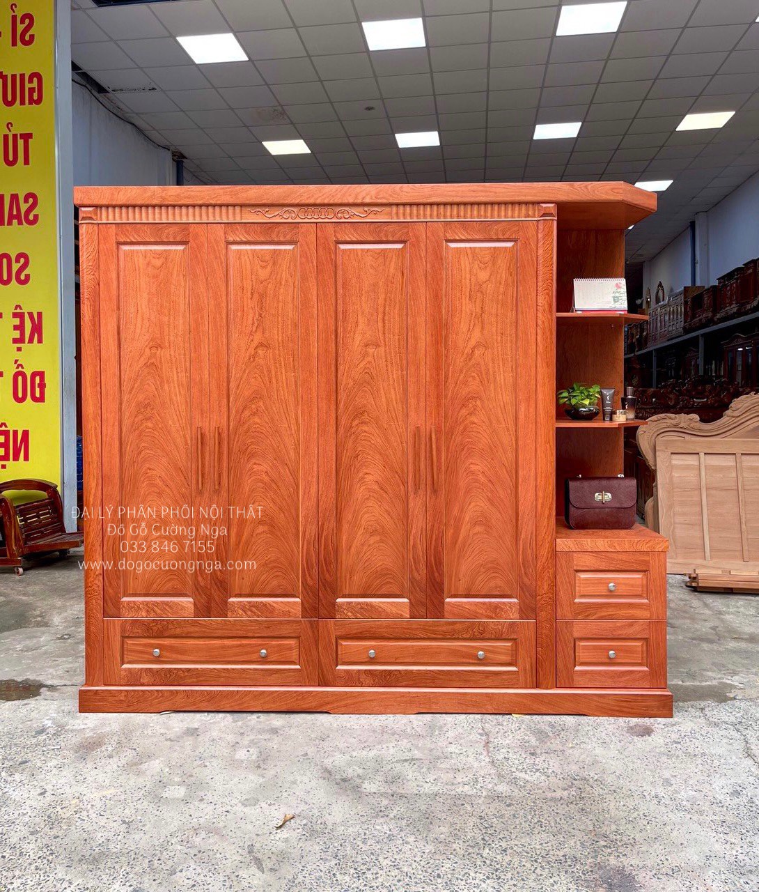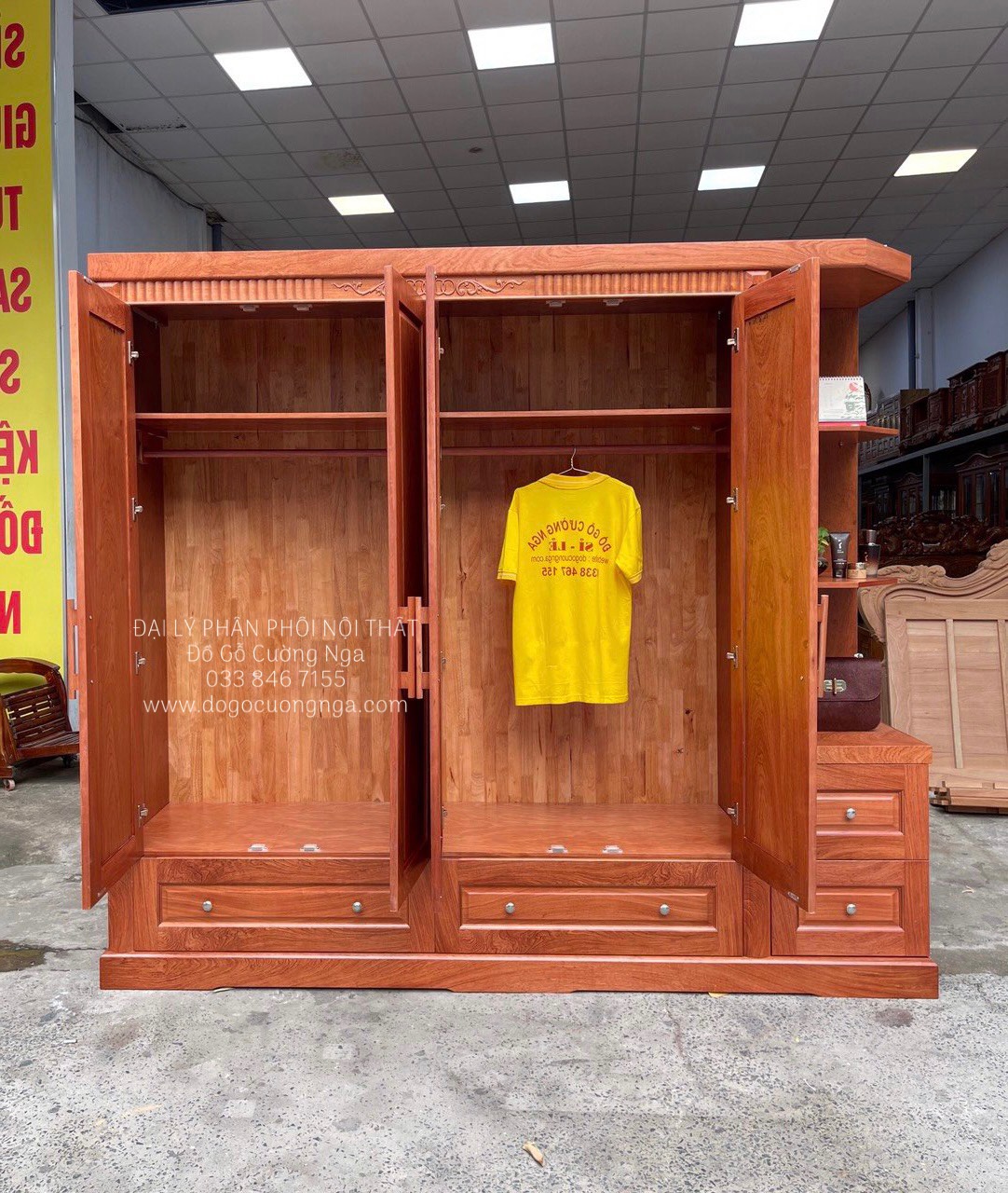 Chi tiết tủ áo gỗ hương đá 4 cánh góc trang trí
