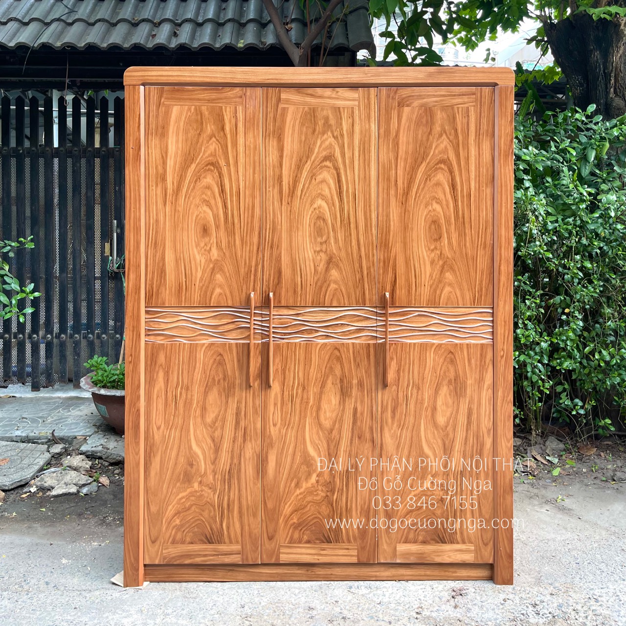 Tủ áo gỗ hương xám 3 cánh 2 buồng hiện đại
