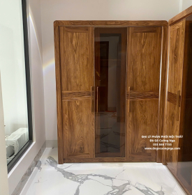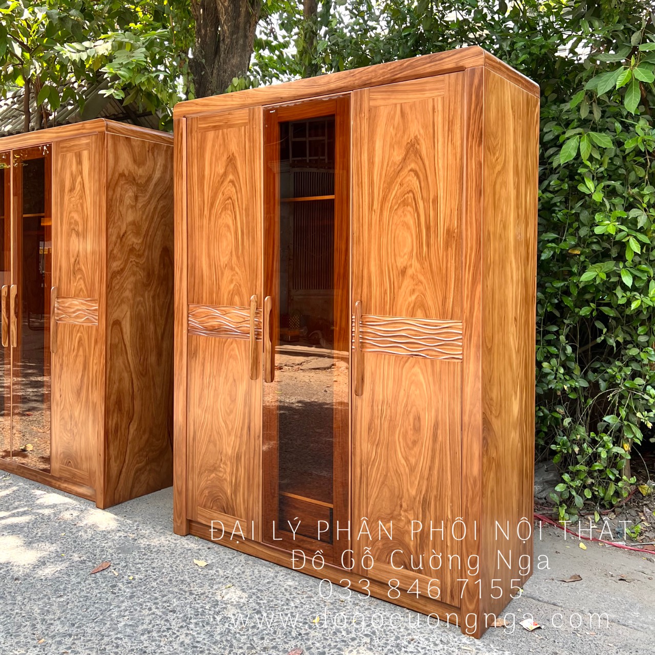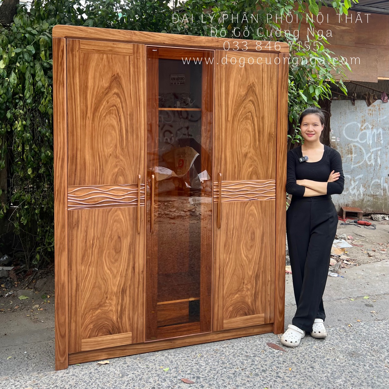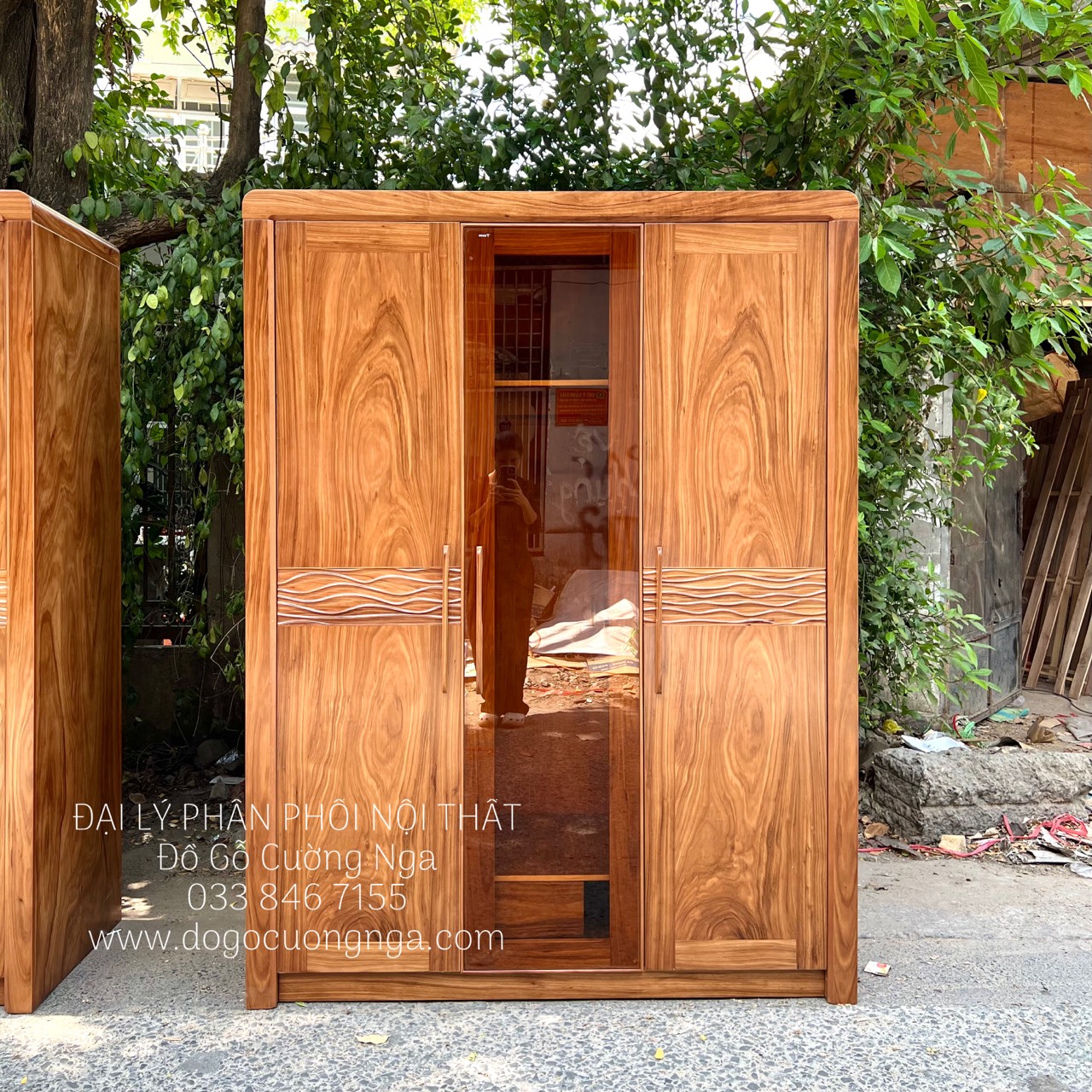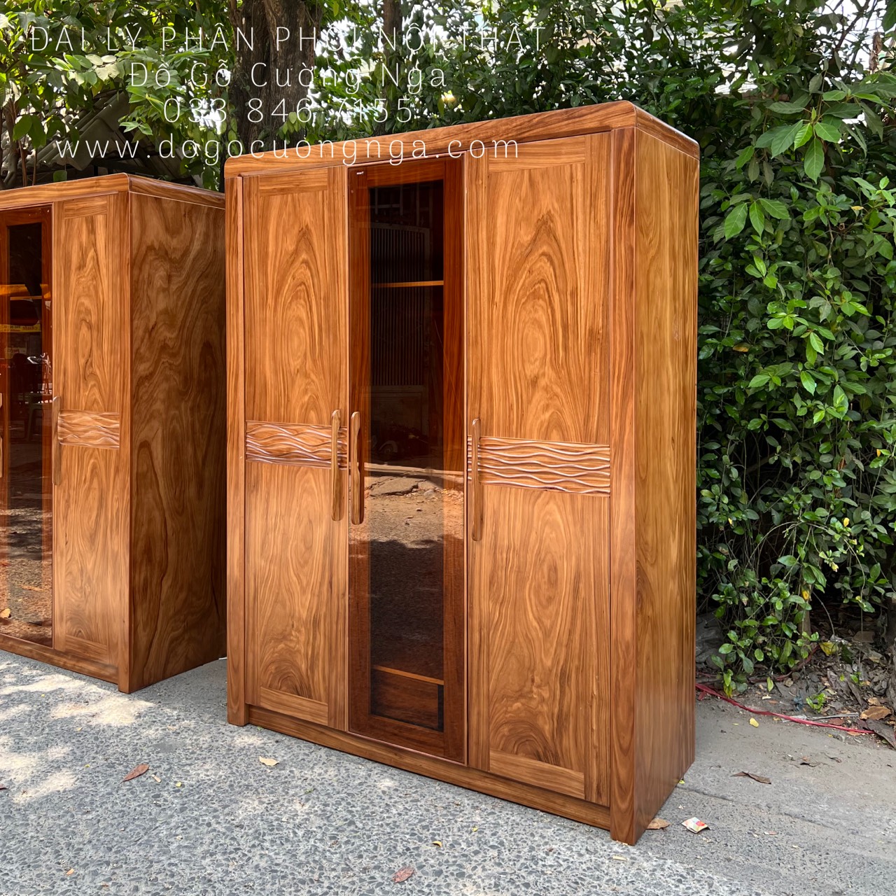 Kích thước tủ áo gỗ hương xám 3 cánh kính