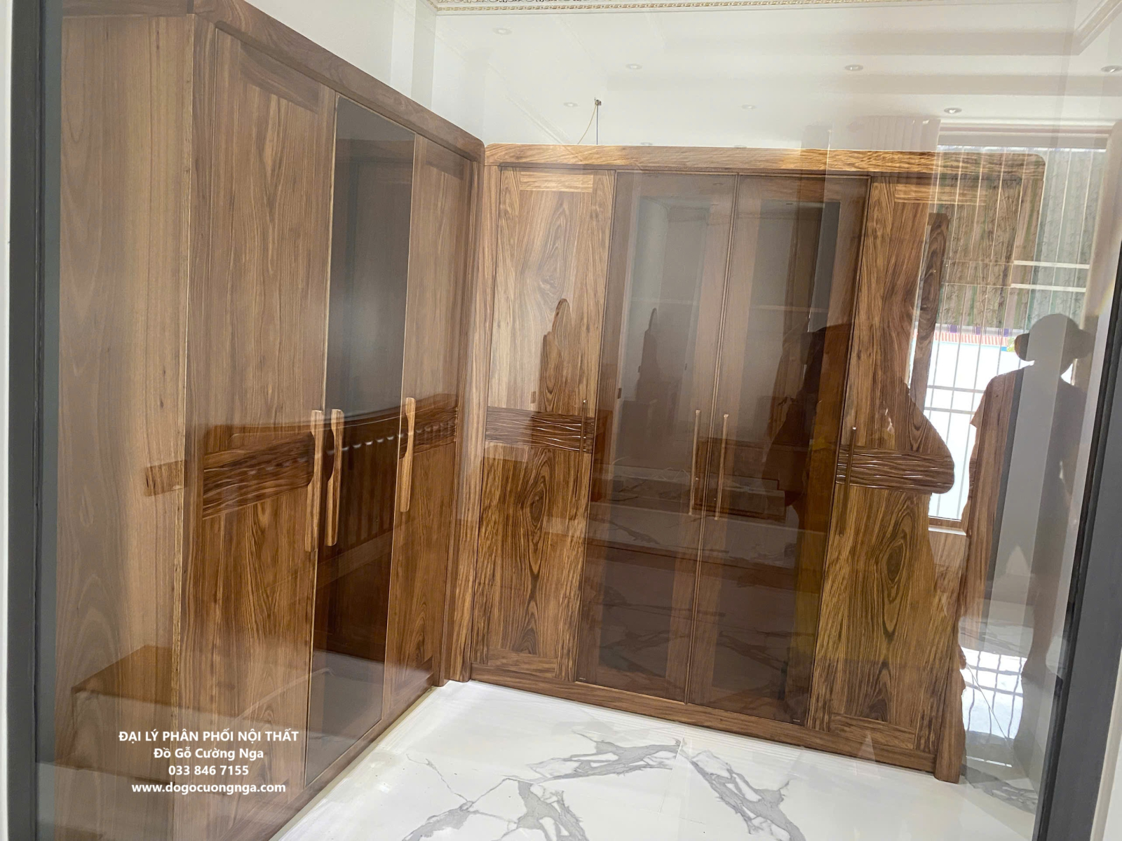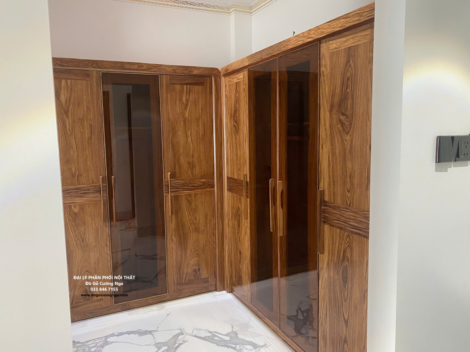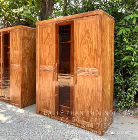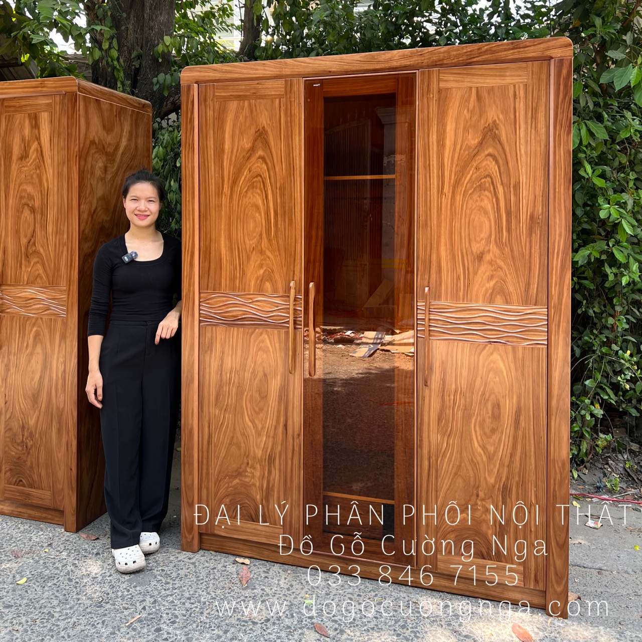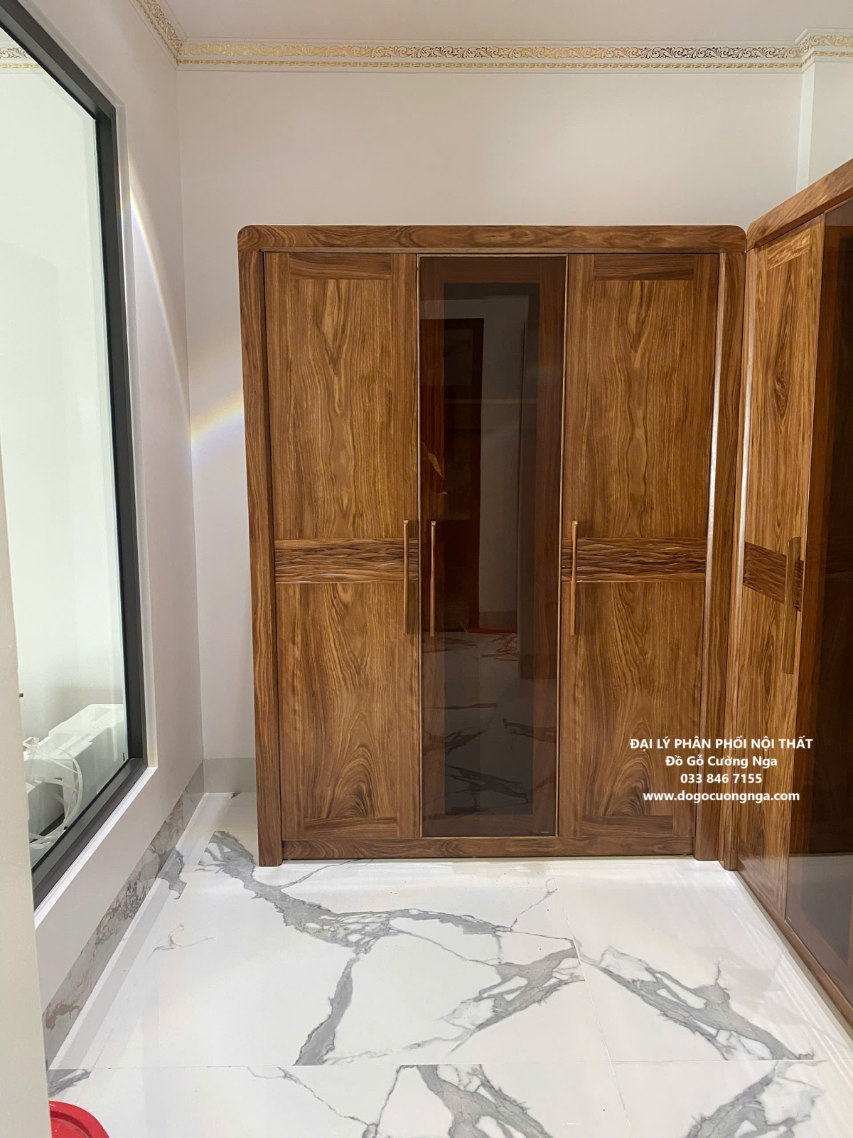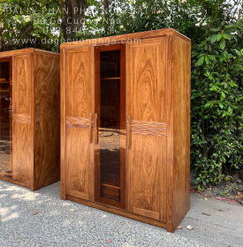 Kích thước tủ áo gỗ hương xám 3 cánh kính