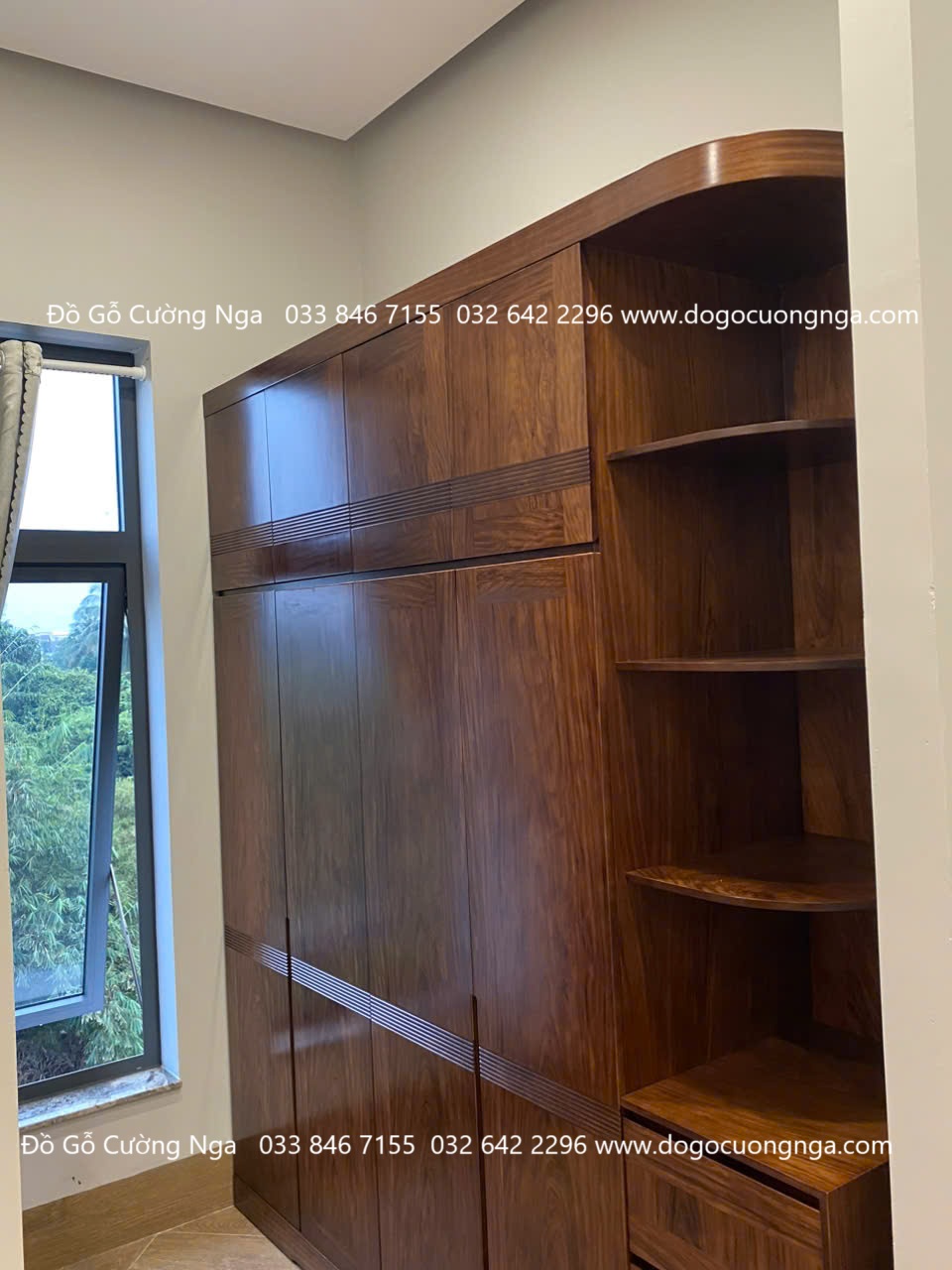 Tủ áo gỗ hương xám 4 cánh thiết kế hiện đại