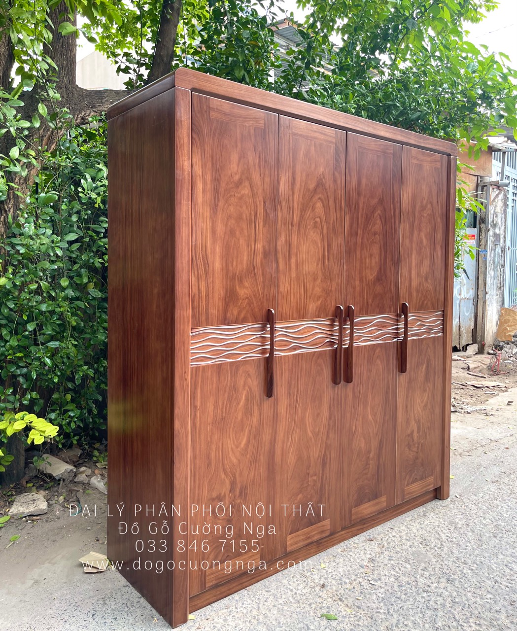 Tủ áo gỗ hương xám 4 cánh giao khách
