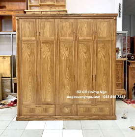 Tủ quần áo gỗ hương xám 5 cánh 2 tầng