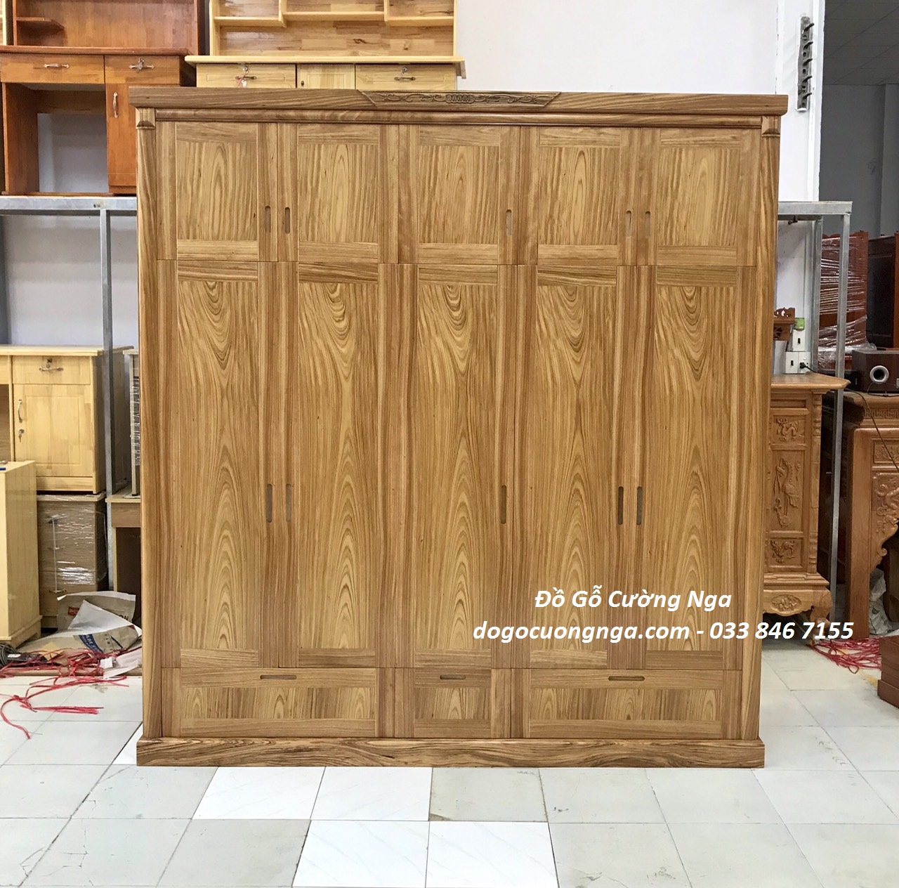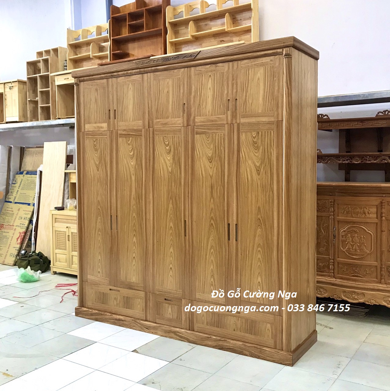 Tủ quần áo gỗ hương xám 5 cánh 2 tầng - đặt hàng