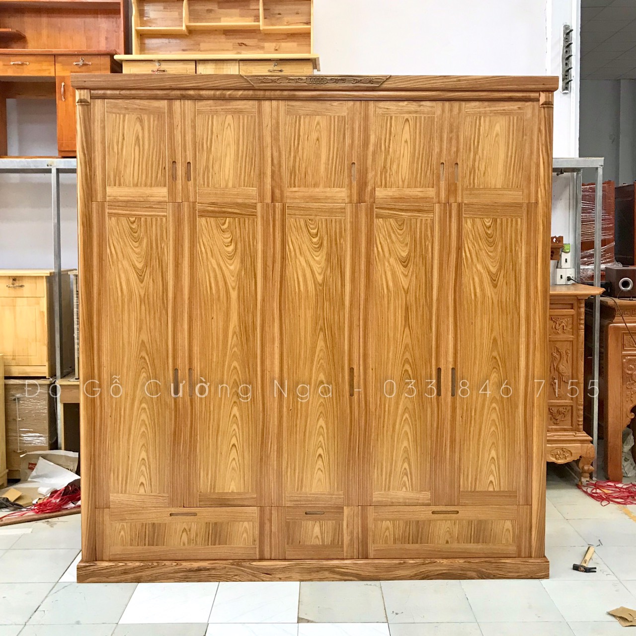 Video thực tế tủ áo gỗ Hương Xám 2 tầng 5 cánh