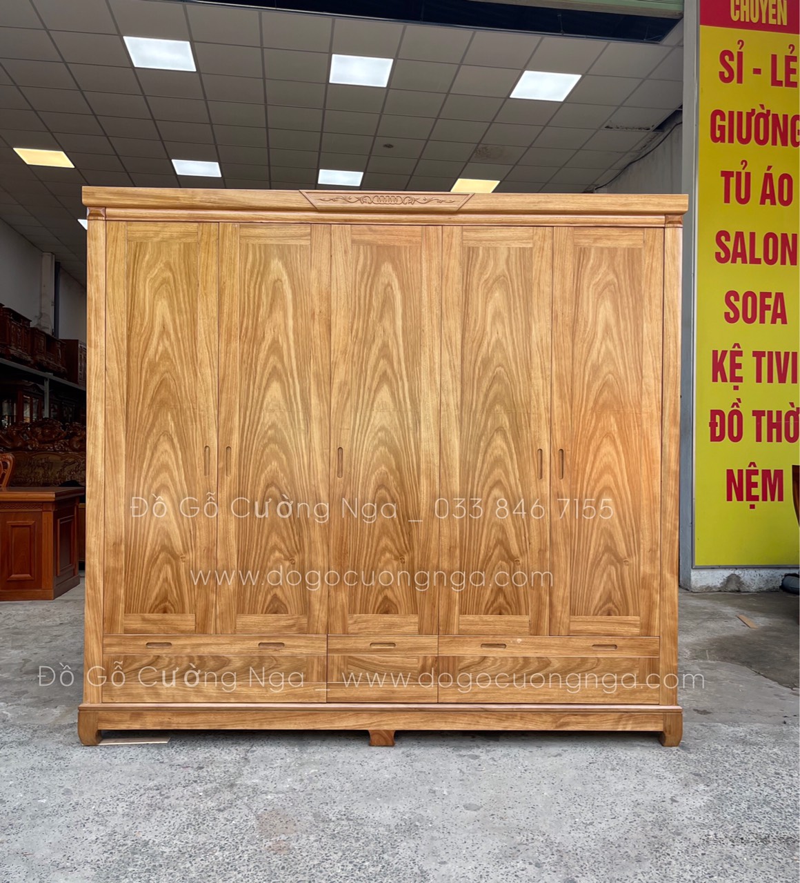 Tủ áo gỗ hương xám 5 cánh - 2m3