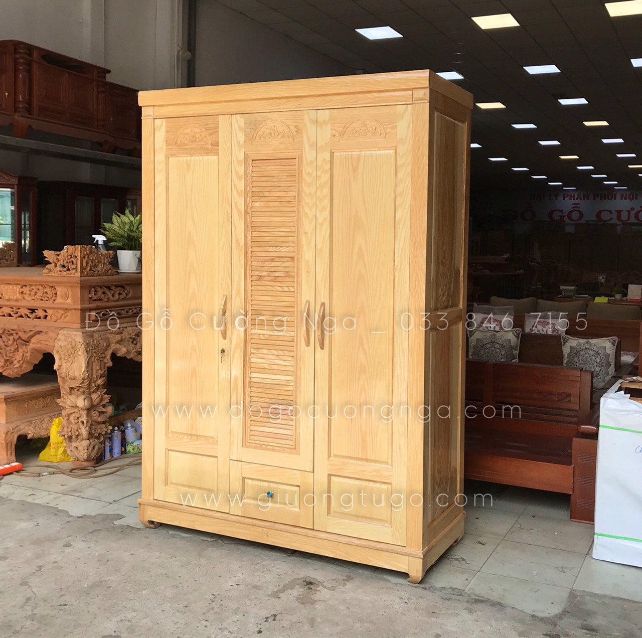 Tủ quần áo gỗ sồi nga 3 cánh giá rẻ