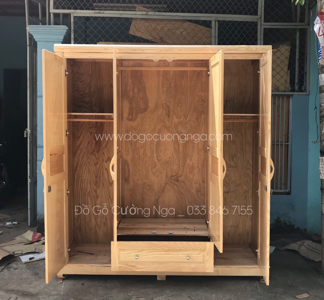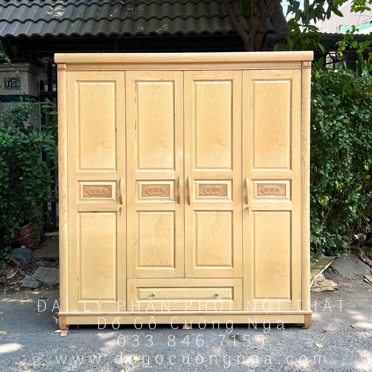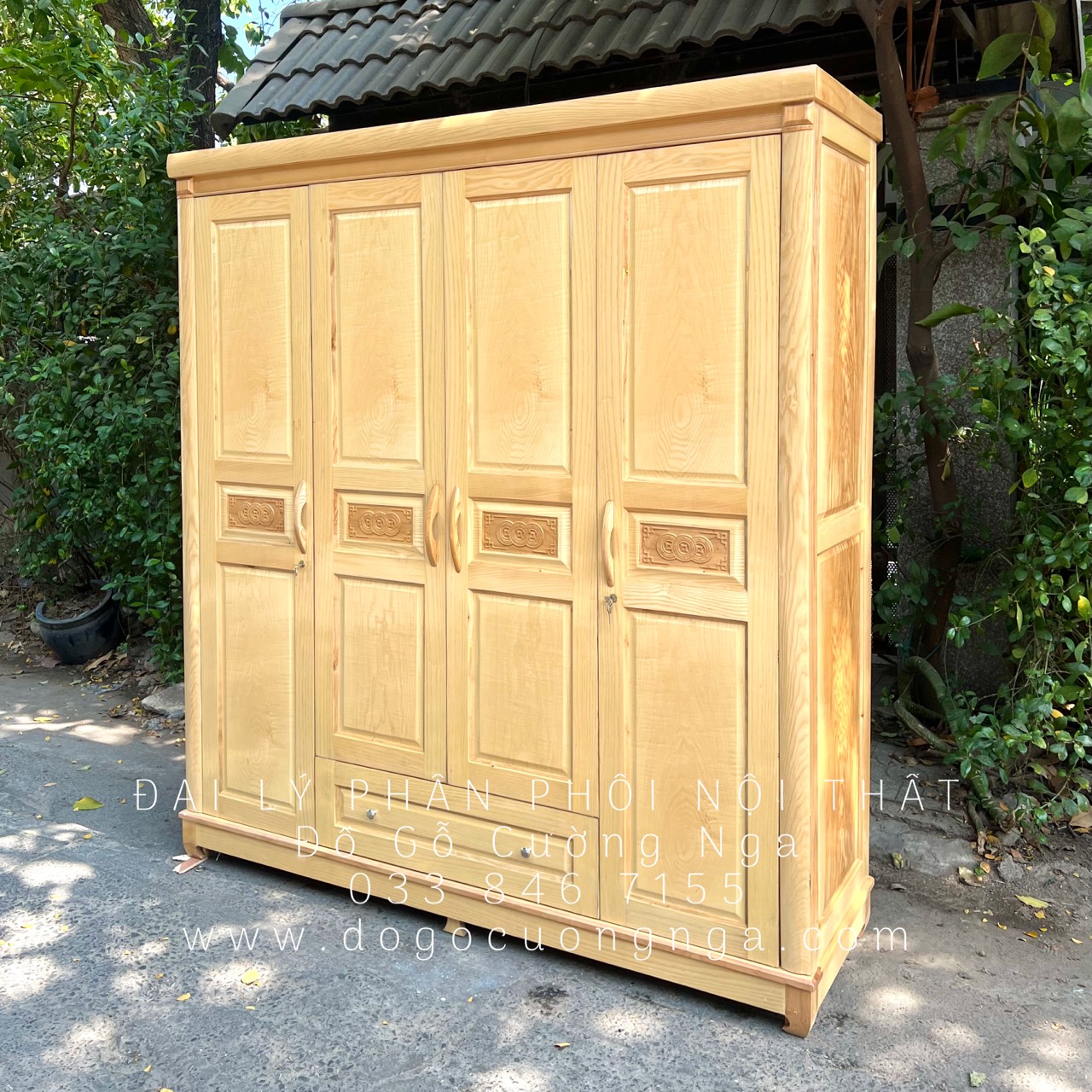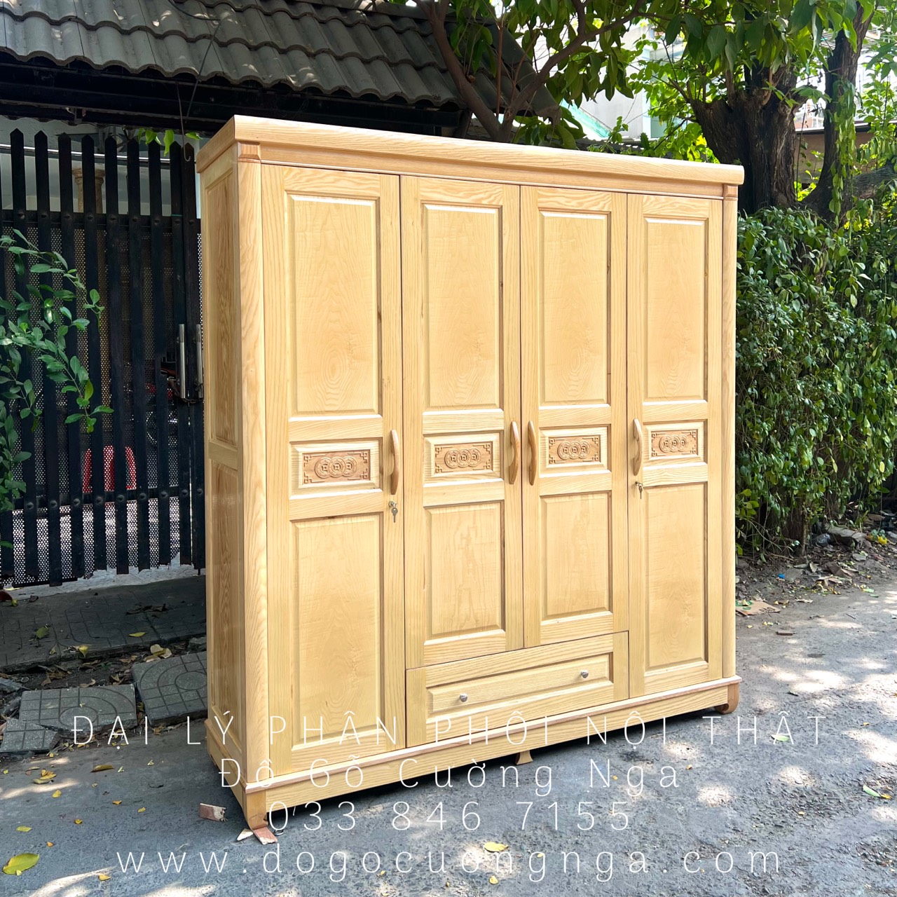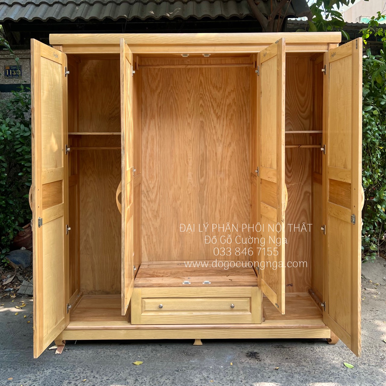 Tủ quần áo gỗ sồi nga 4 cánh giá rẻ