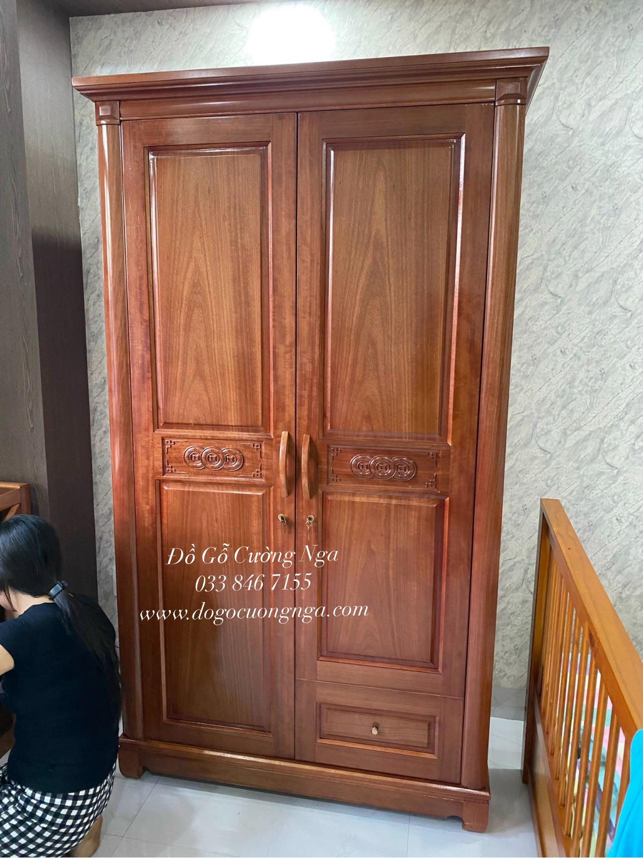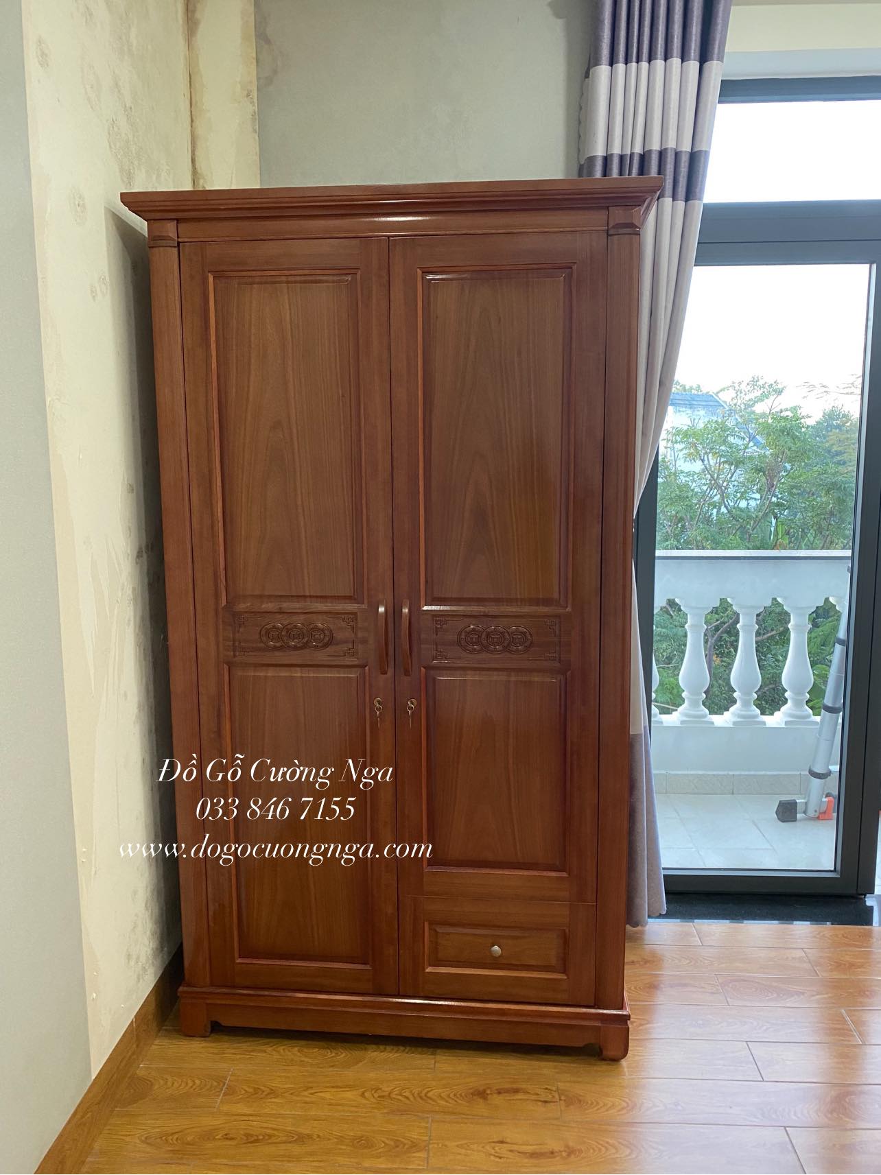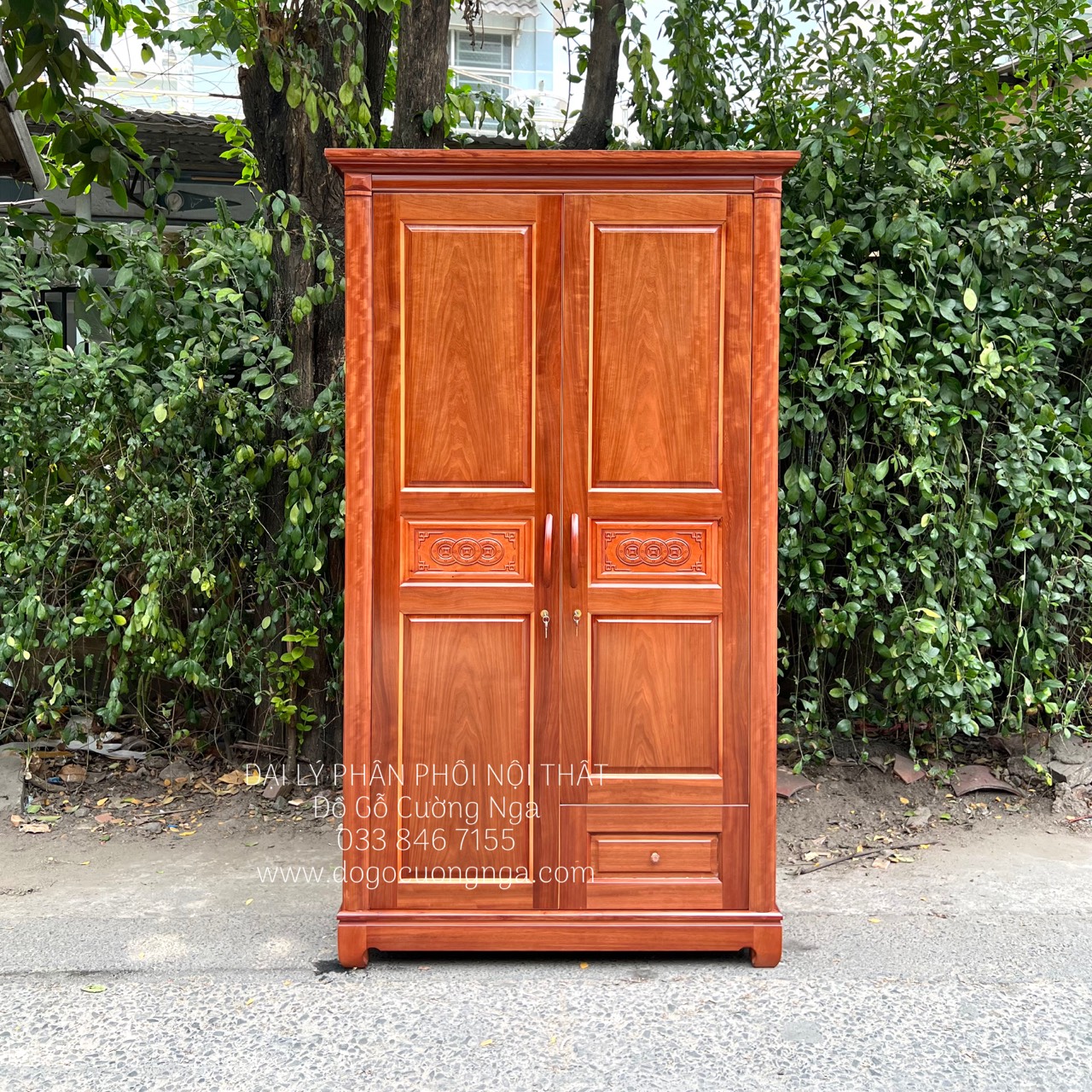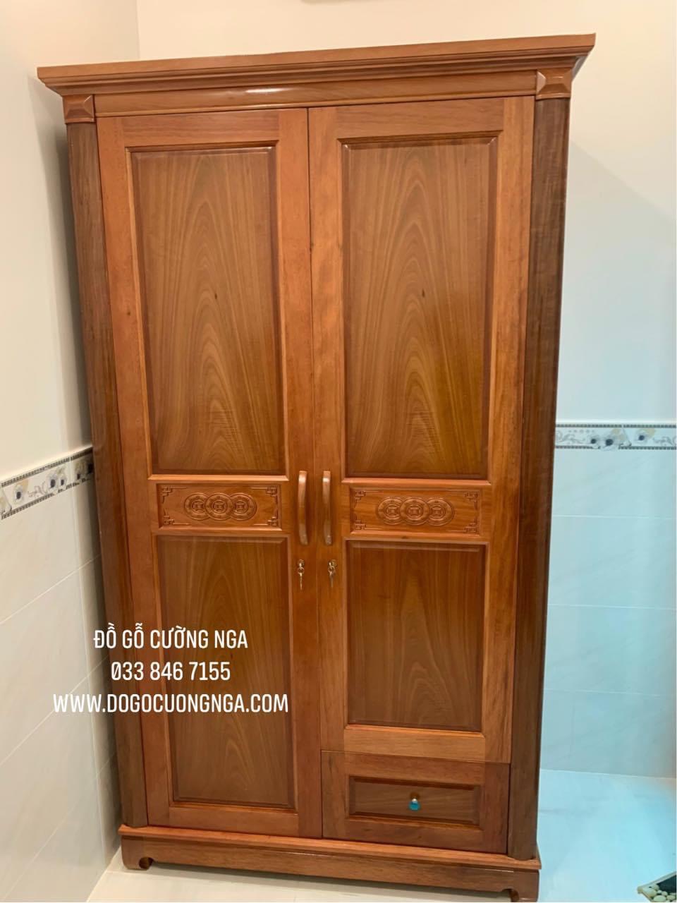 Tủ quần áo gỗ xoan đào 2 cánh 1m2