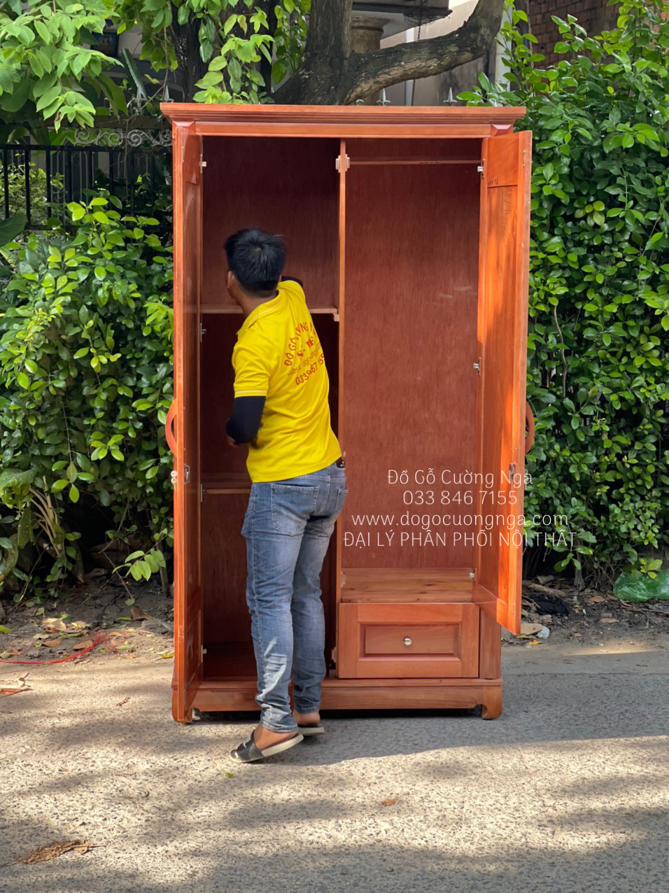 Tủ quần áo gỗ xoan đào 2 cánh 1m2