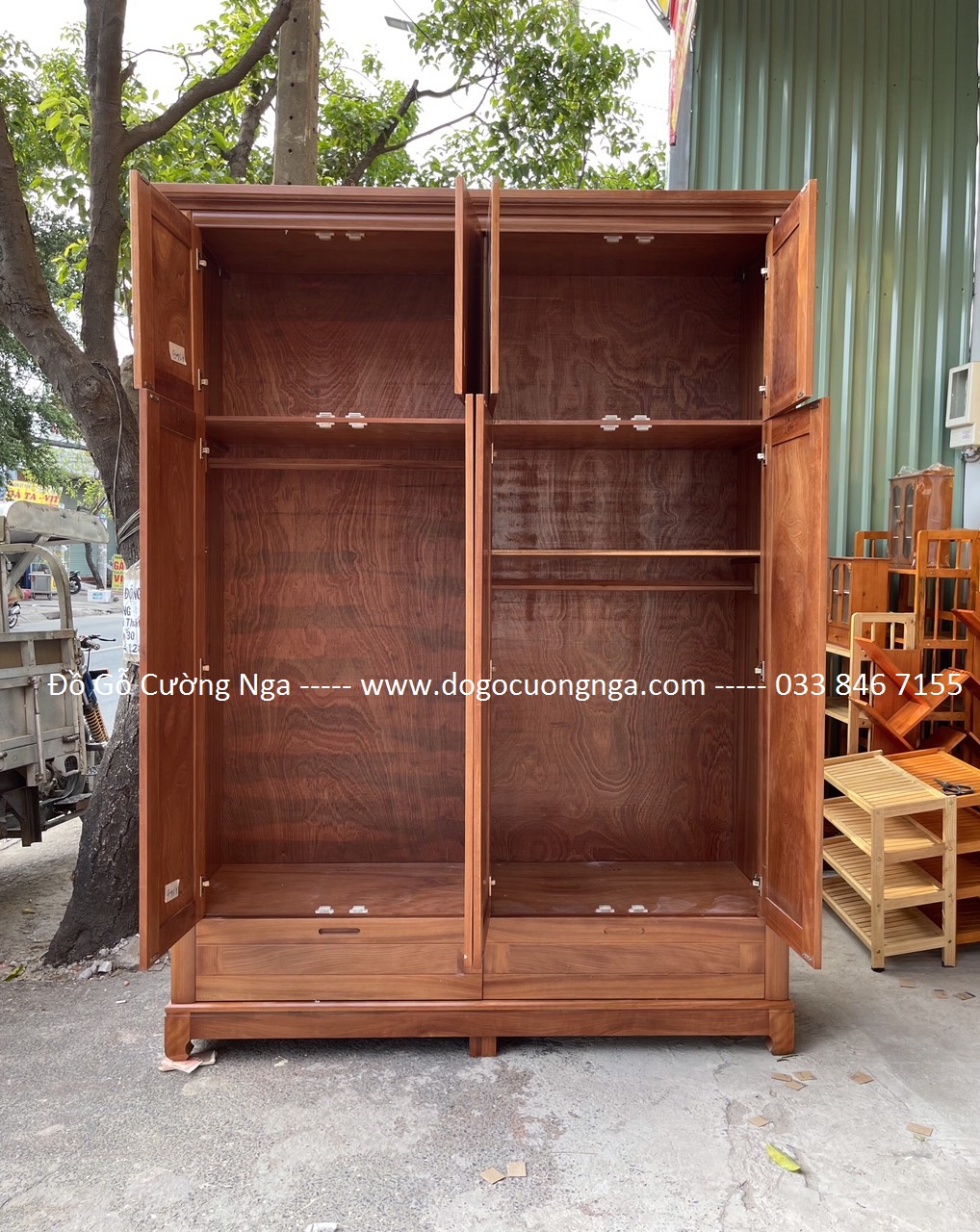 Chi tiết tủ áo gỗ xoan đào 4 cánh 2 tầng
