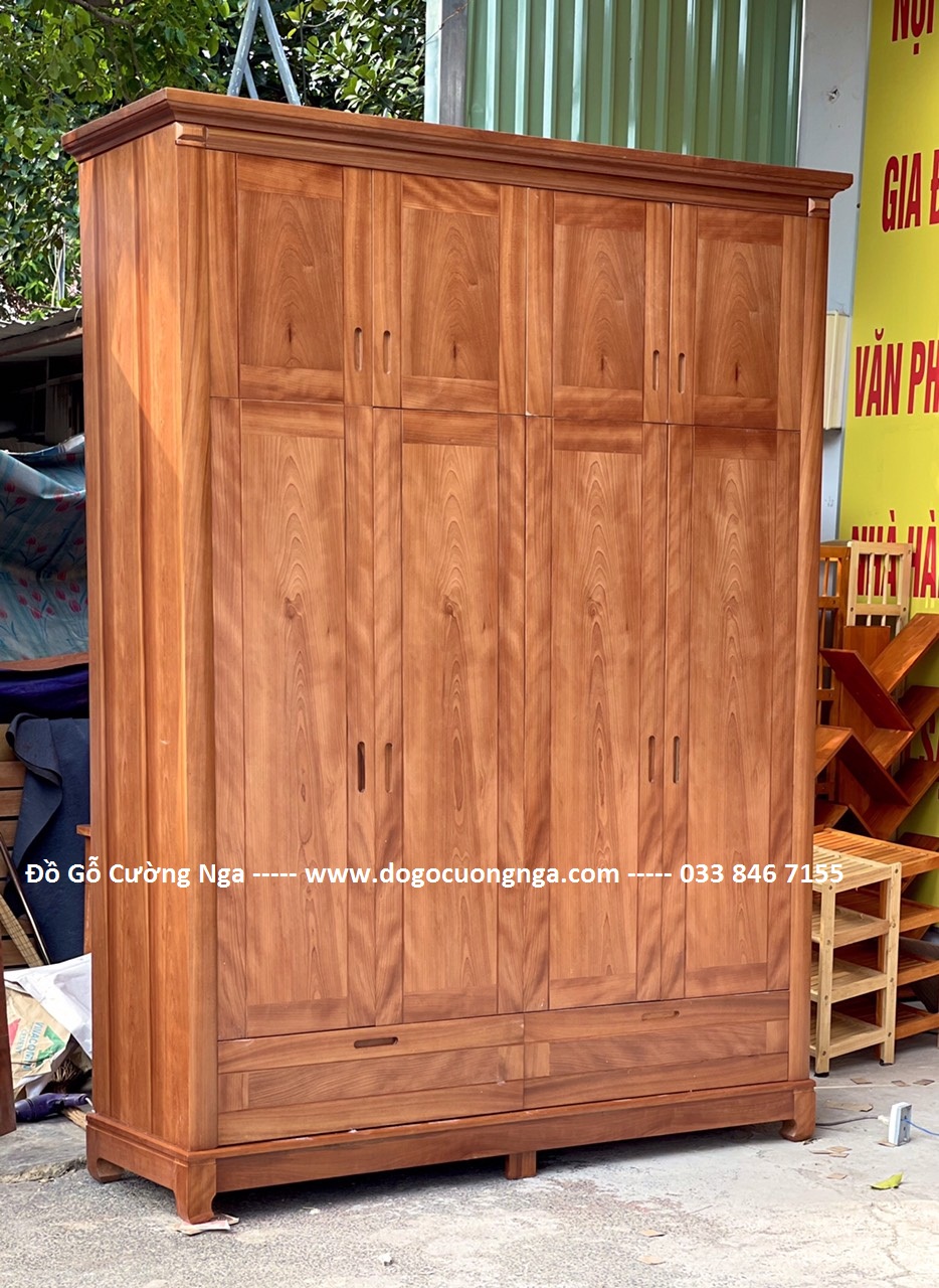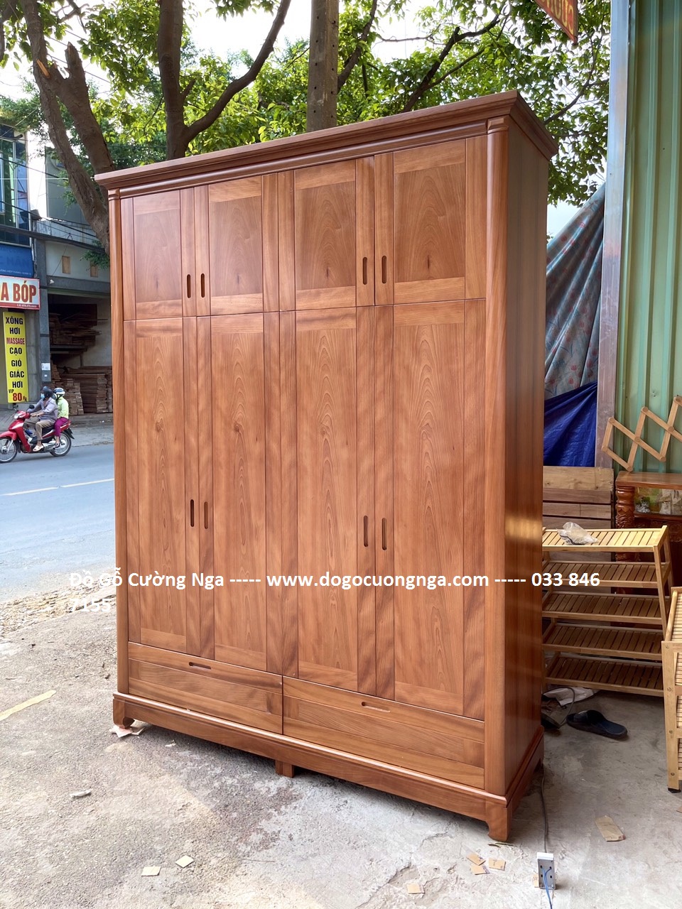 Tủ quần áo gỗ xoan đào 2 tầng - 4 cánh