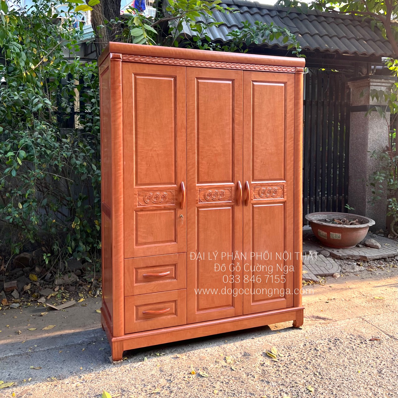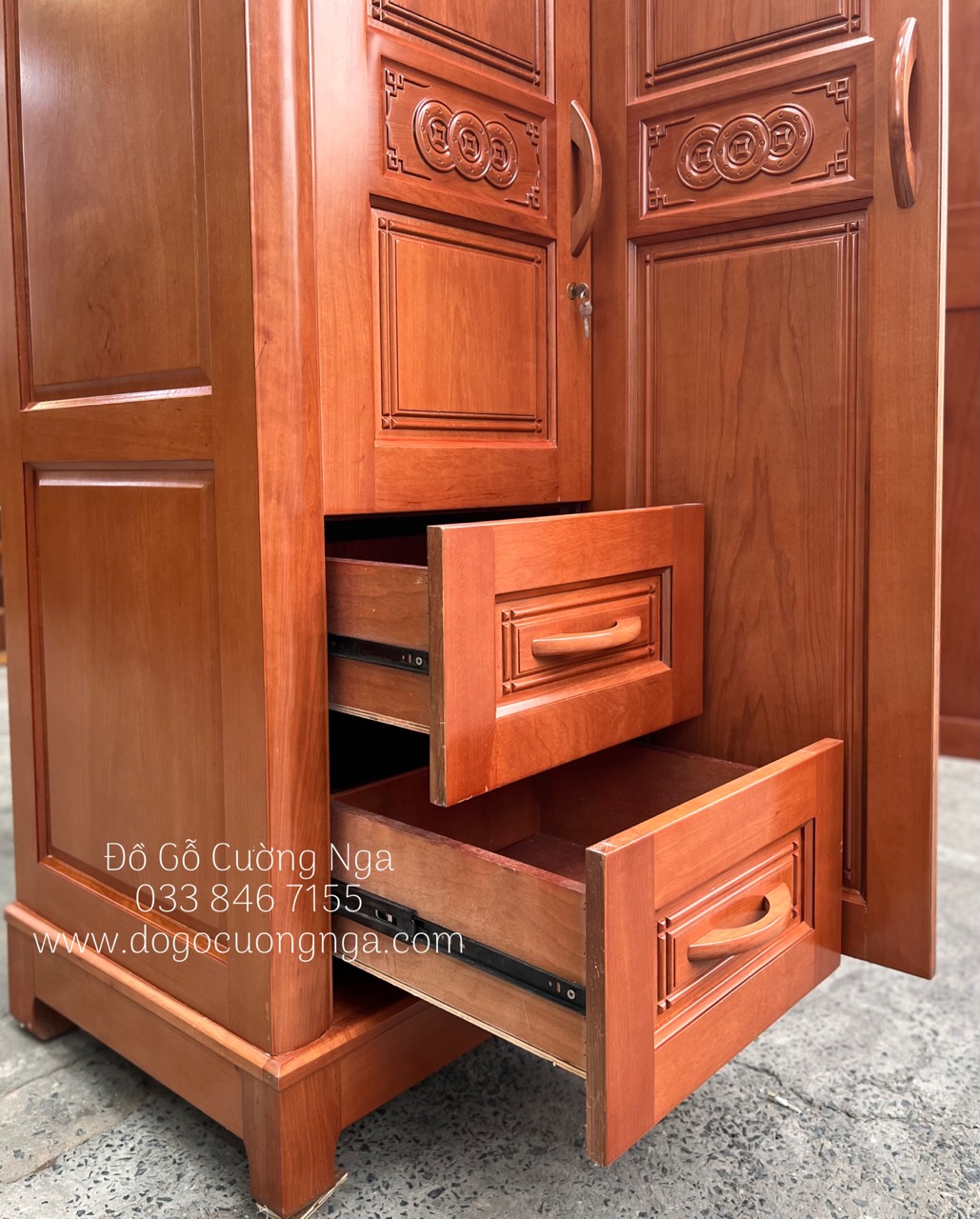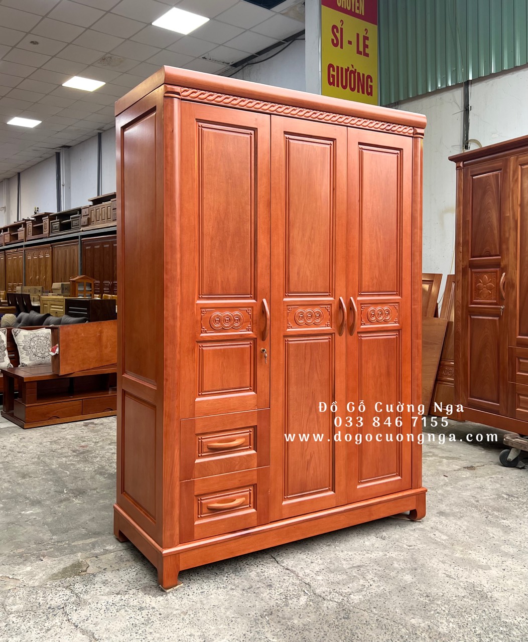 Tủ quần áo gỗ xoan đào 3 cánh cao cấp - mẫu đồng tiền