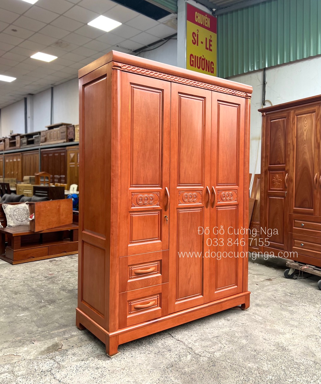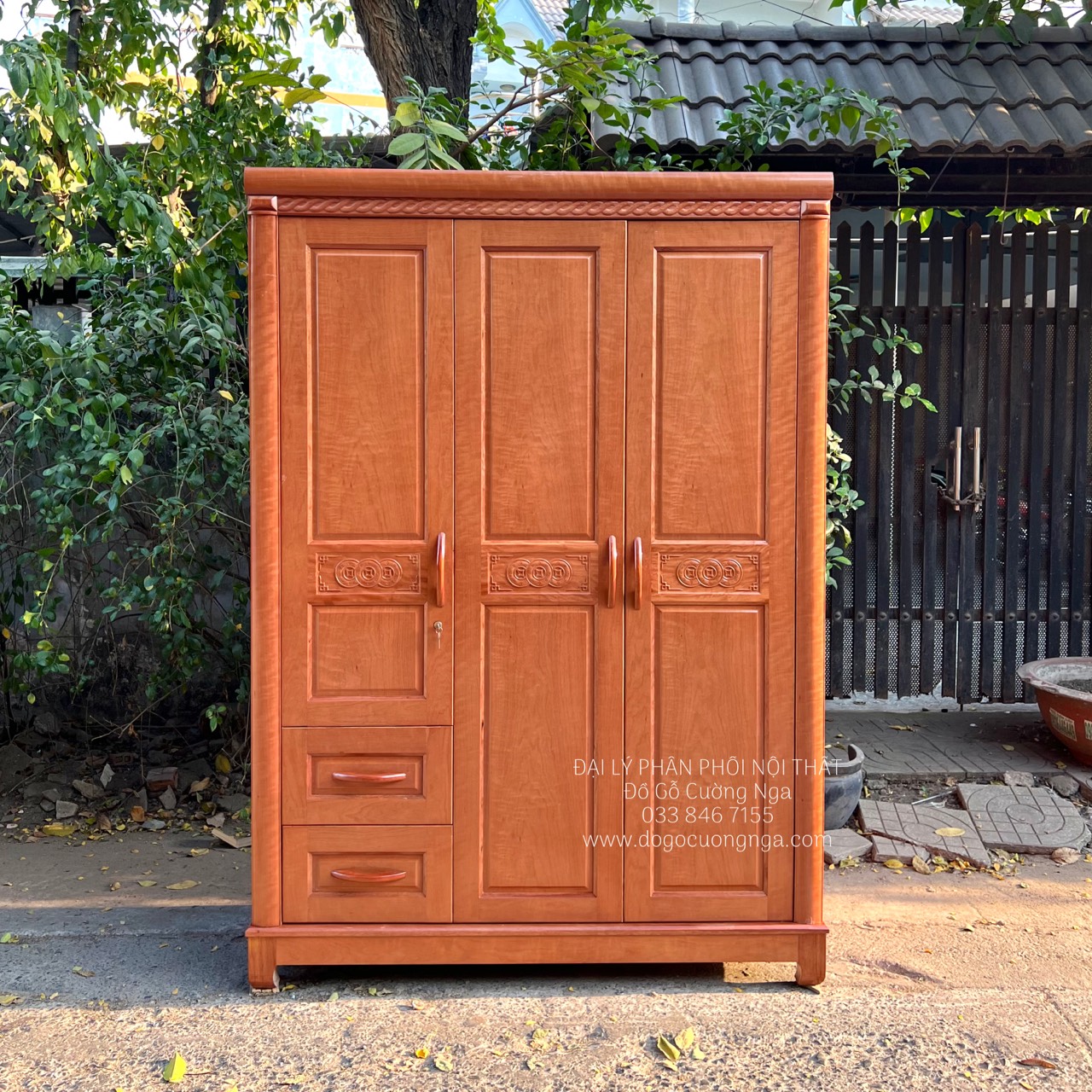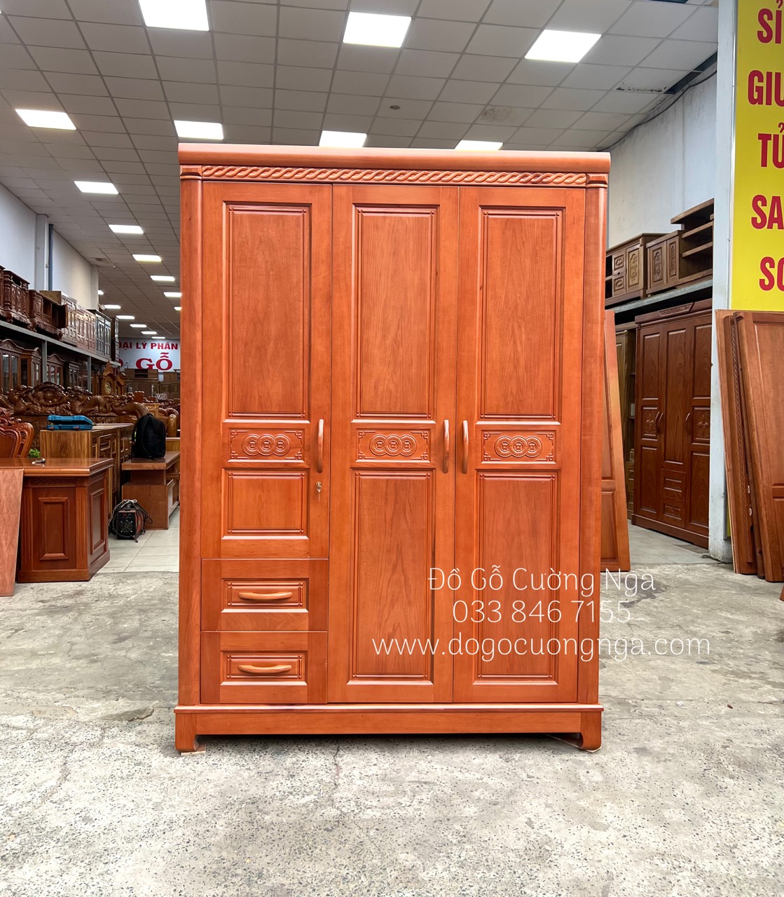 Tủ quần áo gỗ xoan đào 3 cánh cao cấp - mẫu đồng tiền