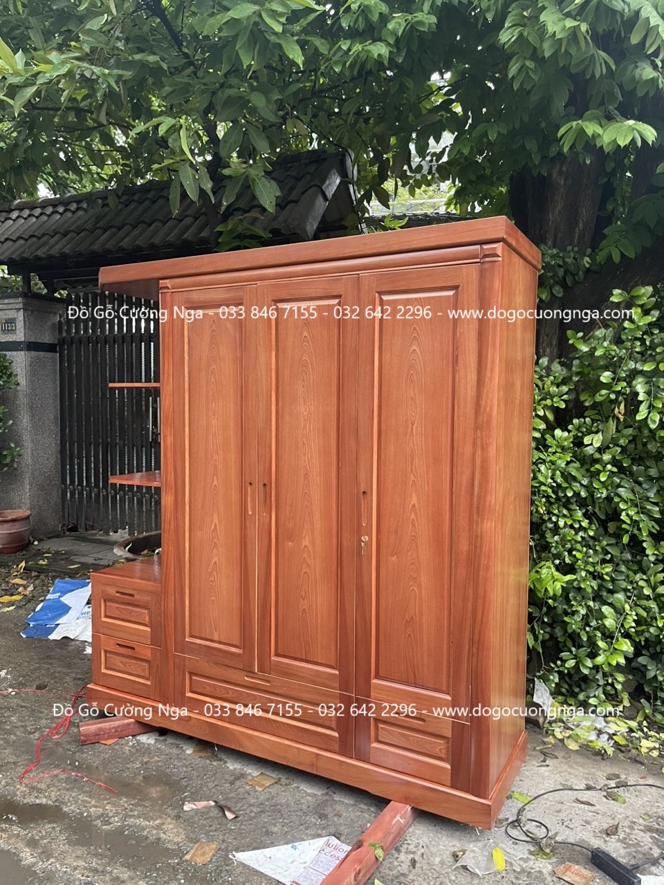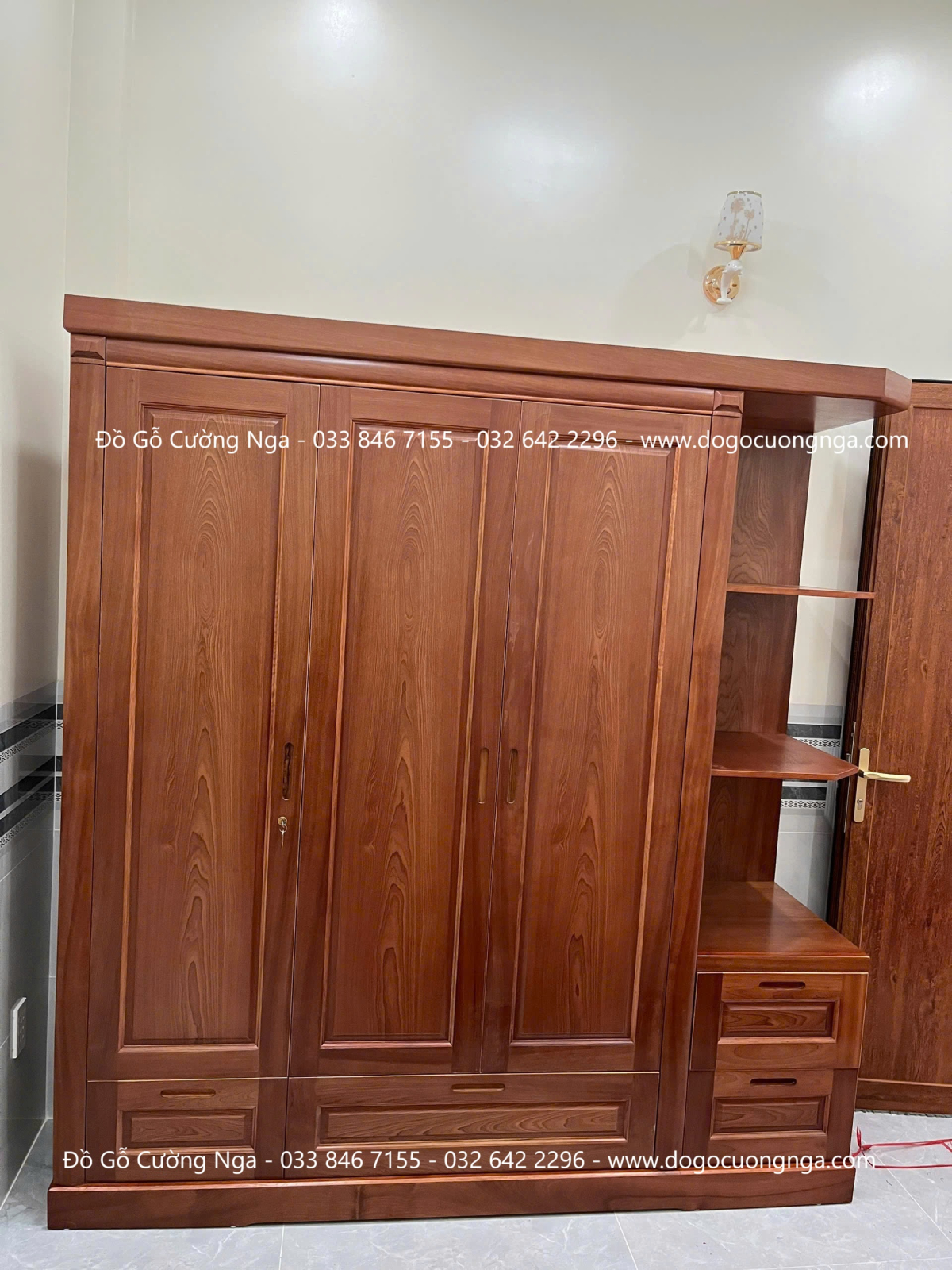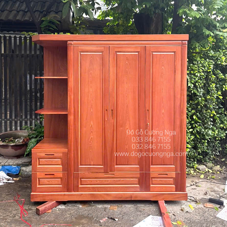 Tủ áo gỗ xoan đào 3 cánh kèm kệ giao khách