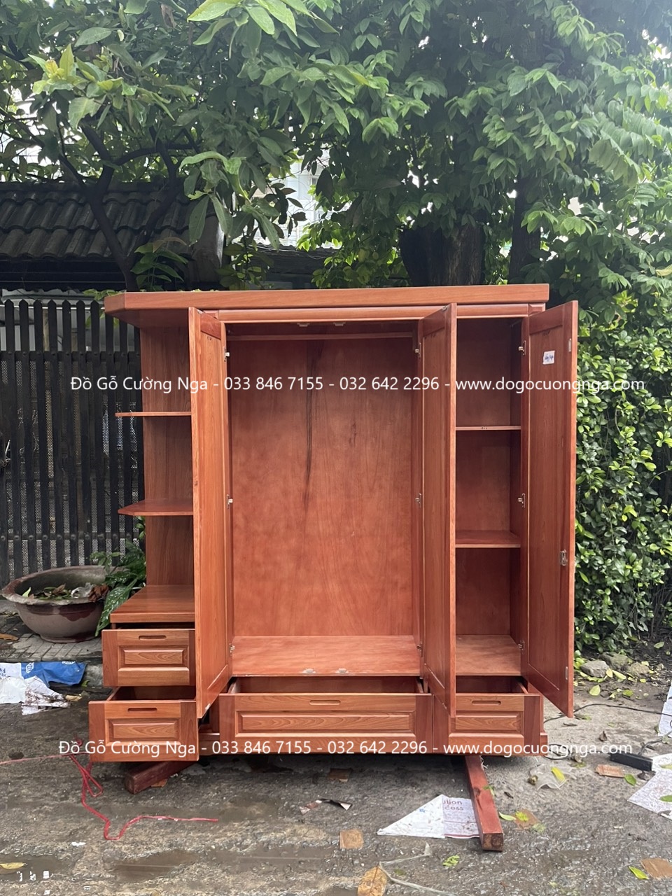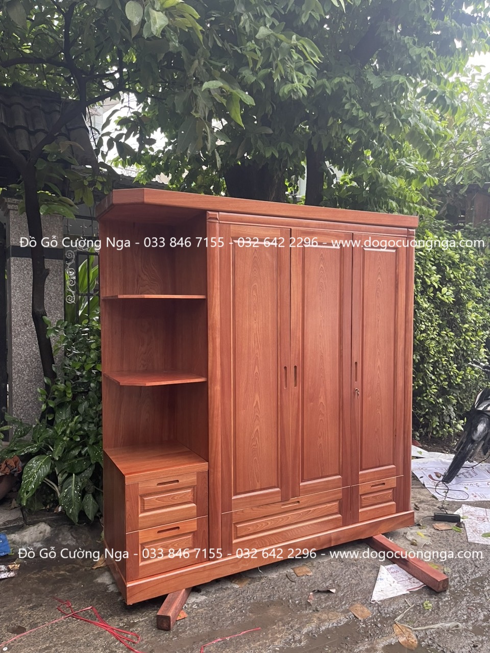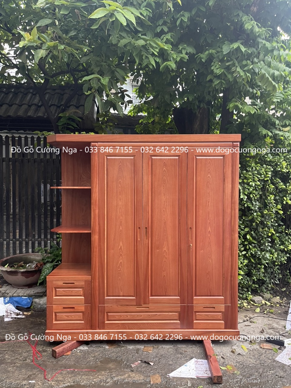 Tủ áo gỗ xoan đào 3 cánh kèm kệ giao khách