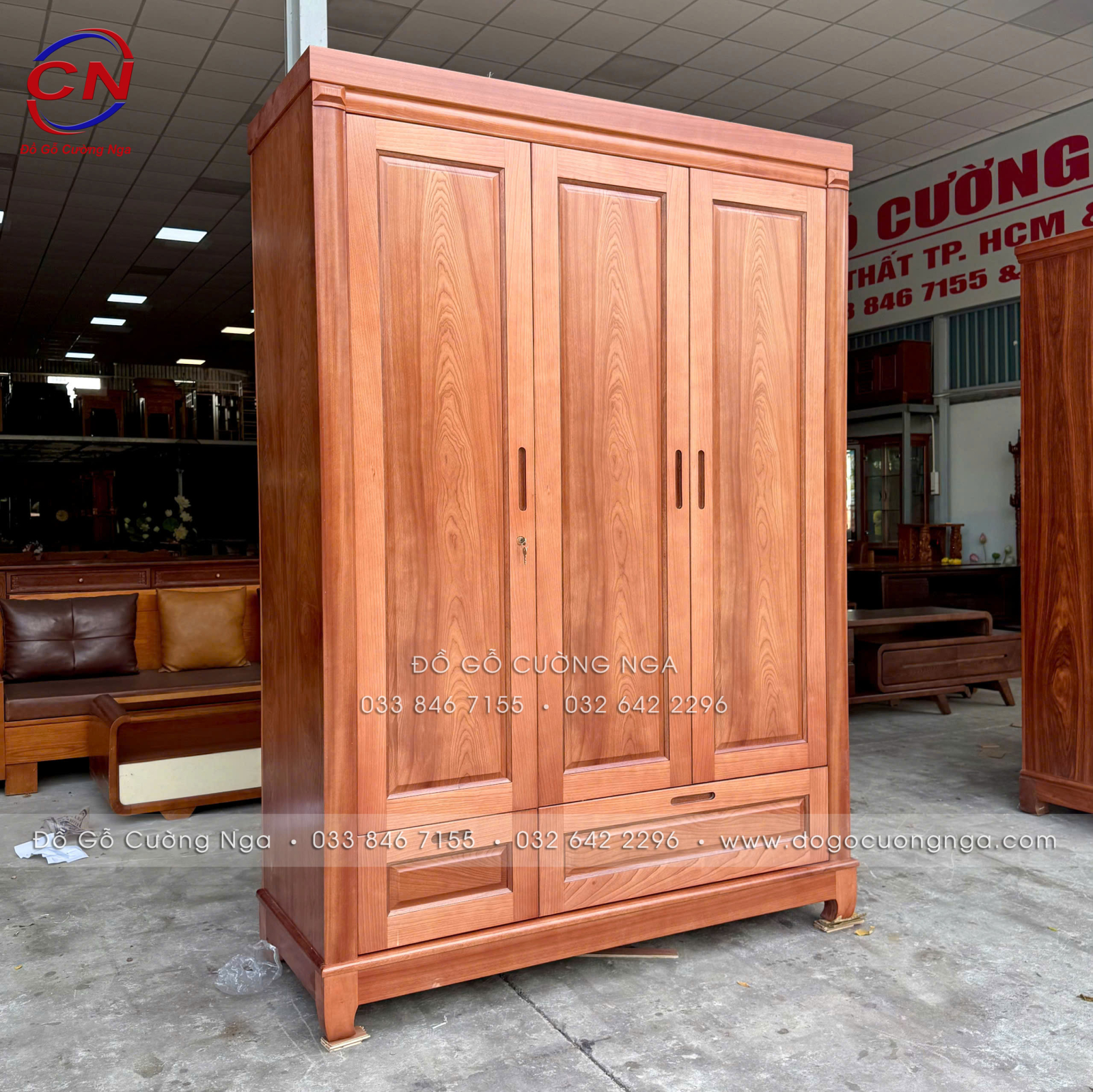 Giới Thiệu Tủ Quần Áo Gỗ Xoan Đào 3 Cánh Trơn 2 Buồng