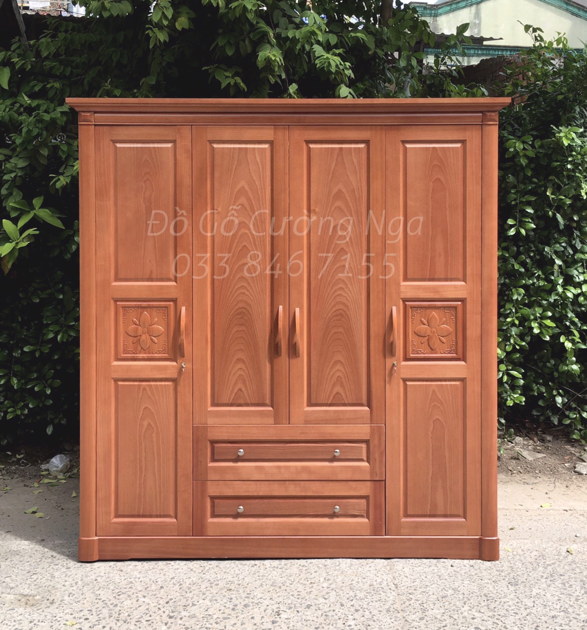 Tủ quần áo gỗ xoan đào 4 cánh 2m - mẫu hoa thị
