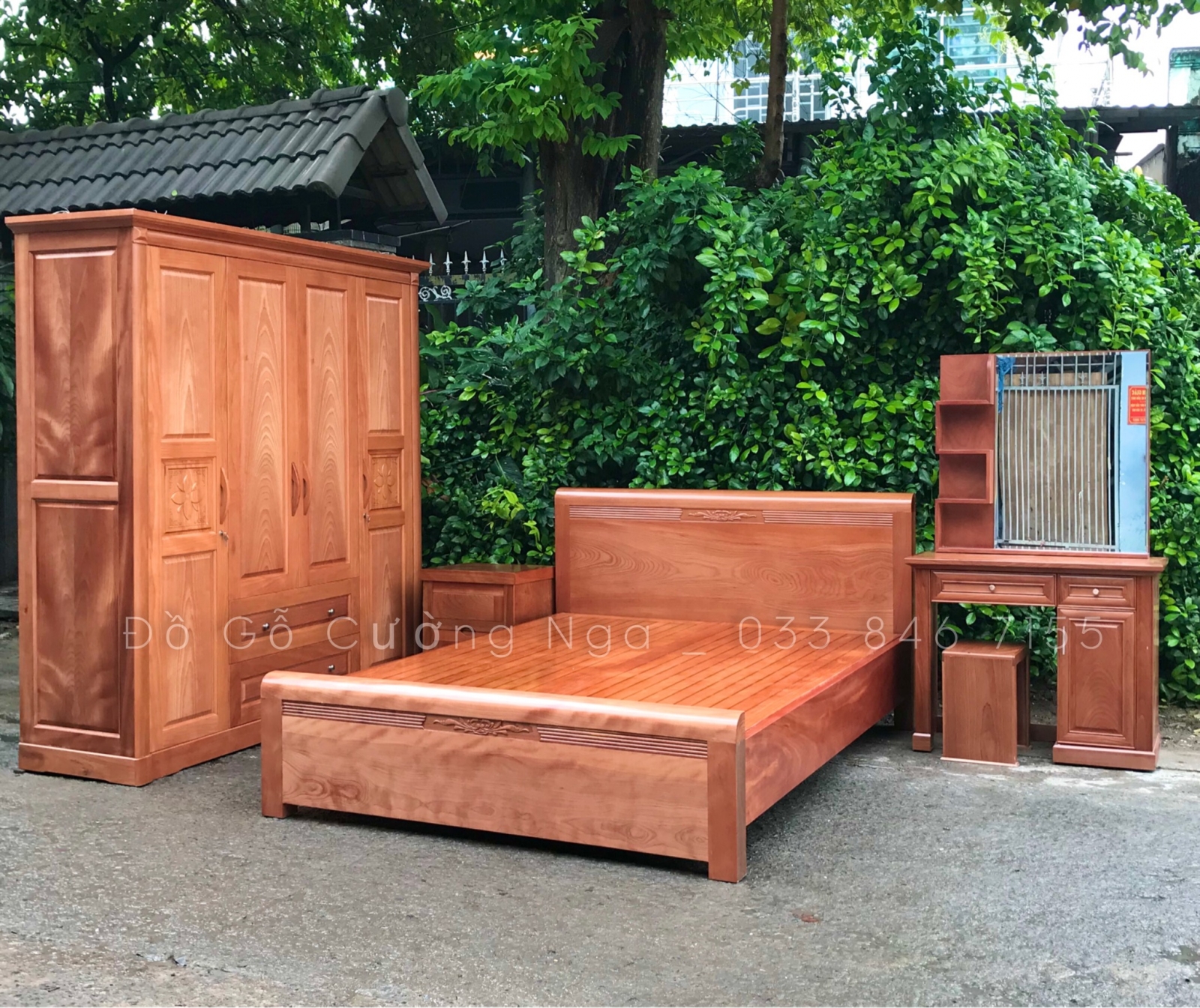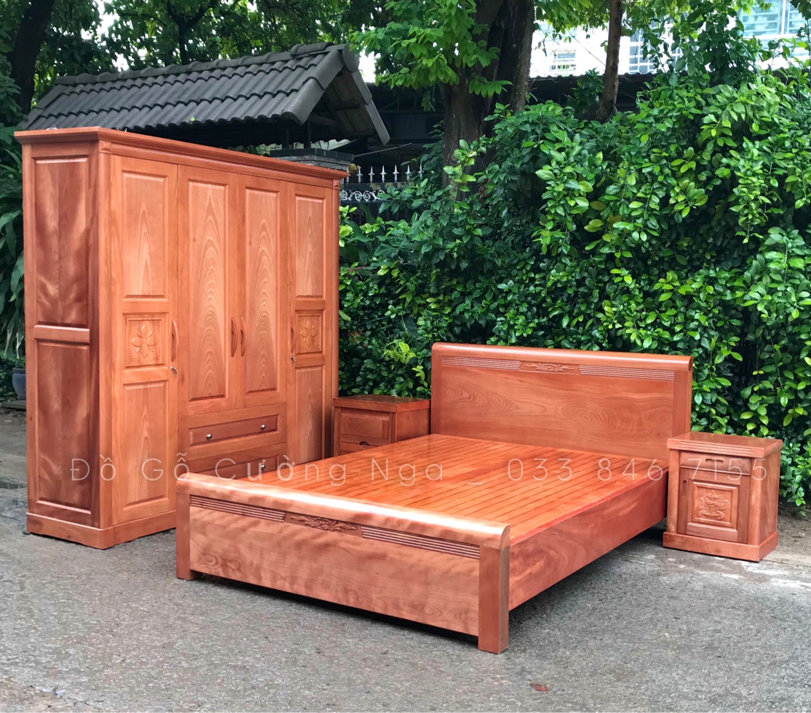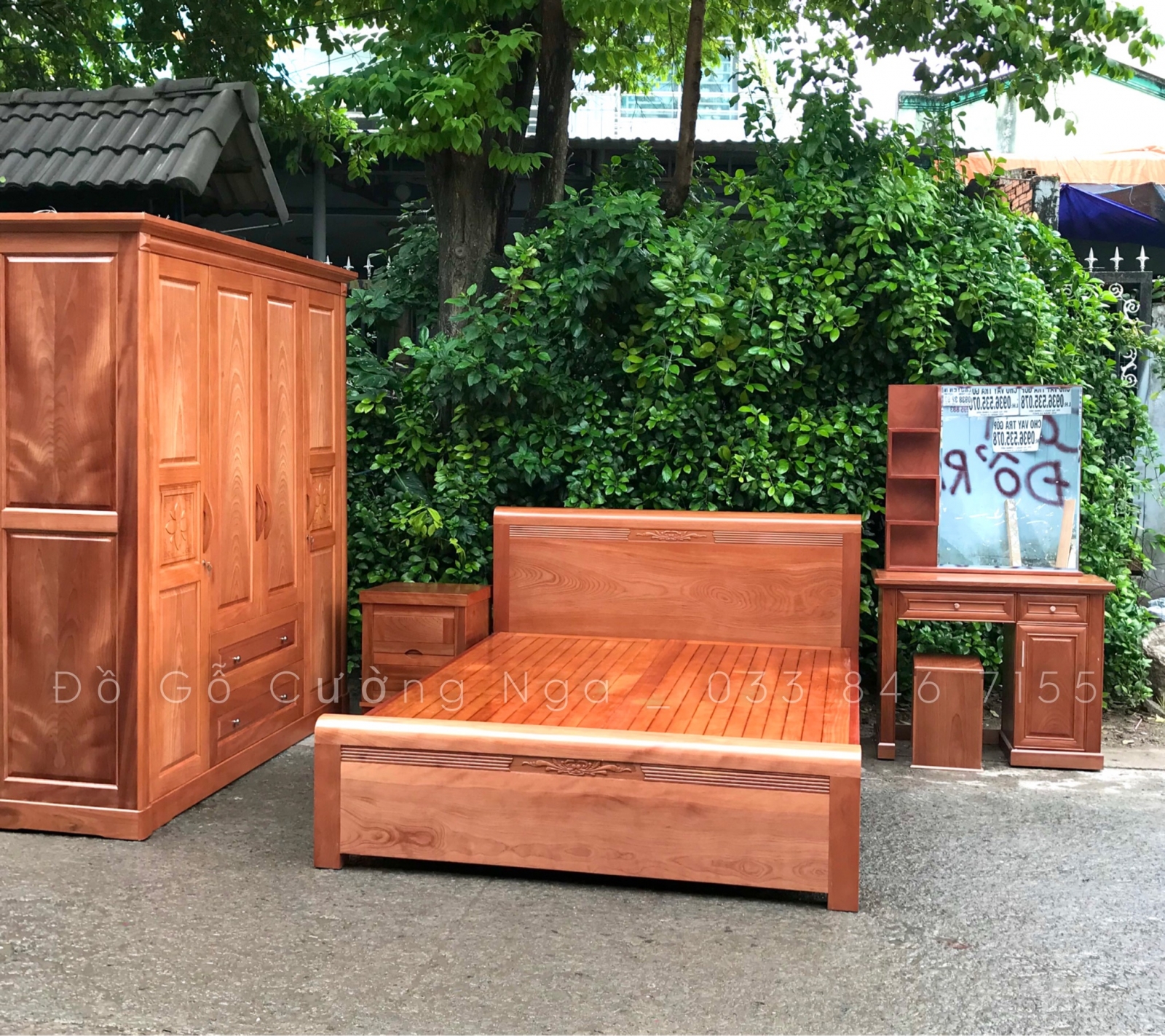 Tủ quần áo gỗ xoan đào 4 cánh hiện đại