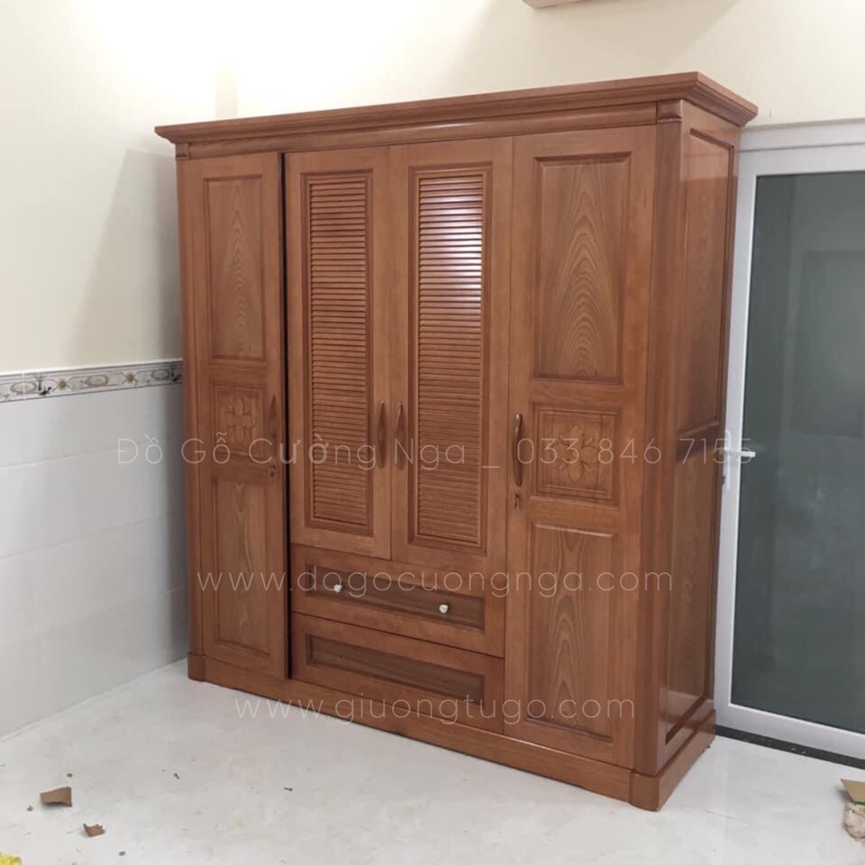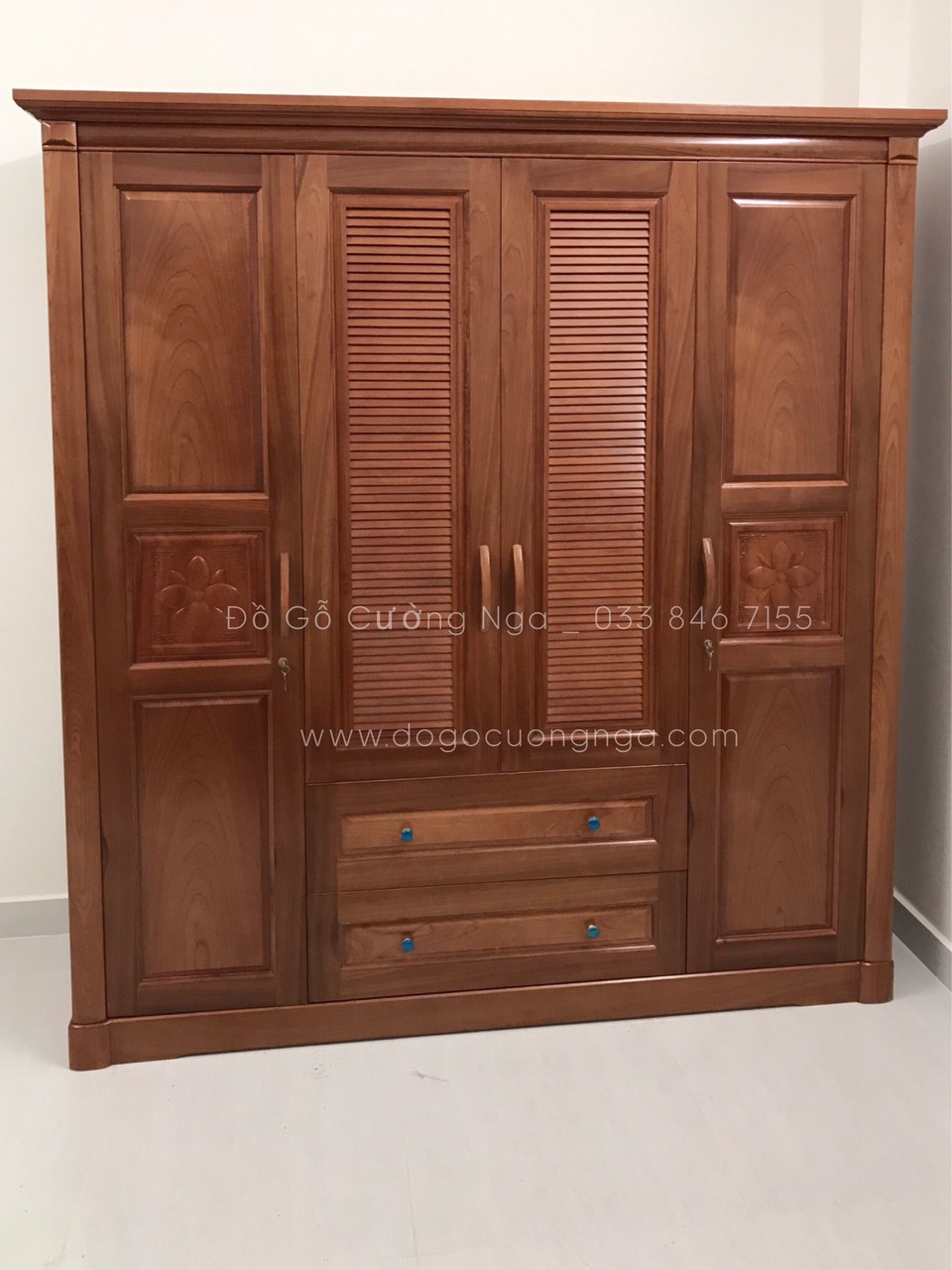 Tủ quần áo gỗ xoan đào 4 cánh hiện đại