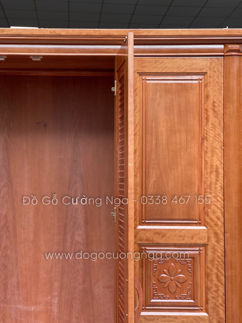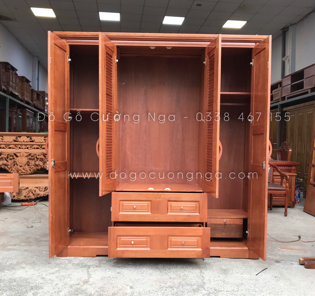 Tủ áo gỗ xoan đào 4 cánh 3 buồng hiên đại