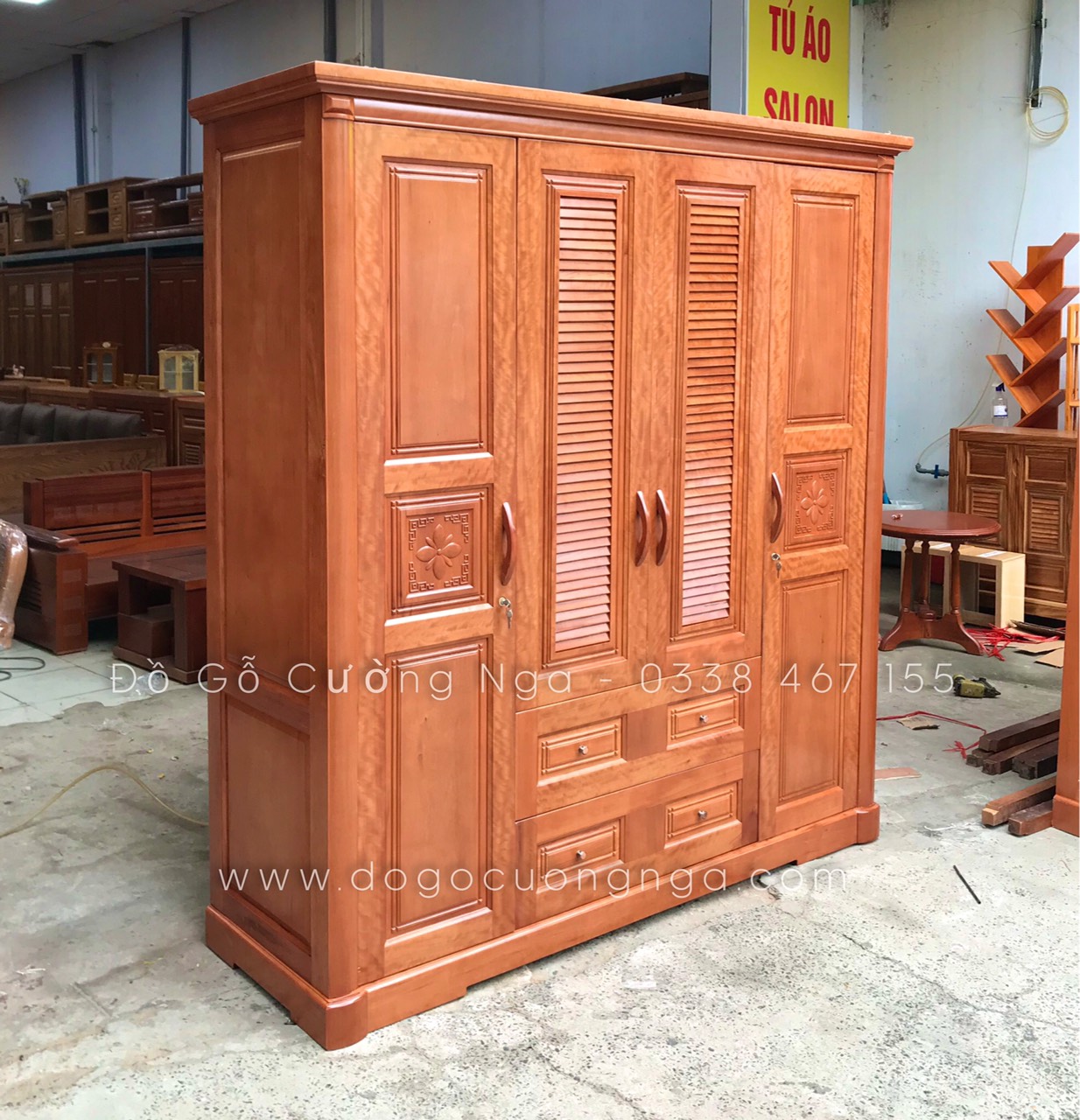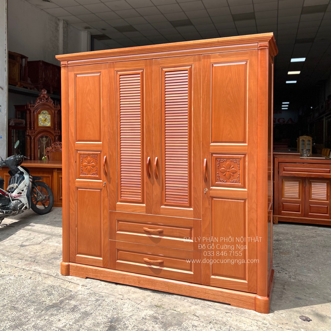 Tủ quần áo gỗ xoan đào 4 cánh cao cấp