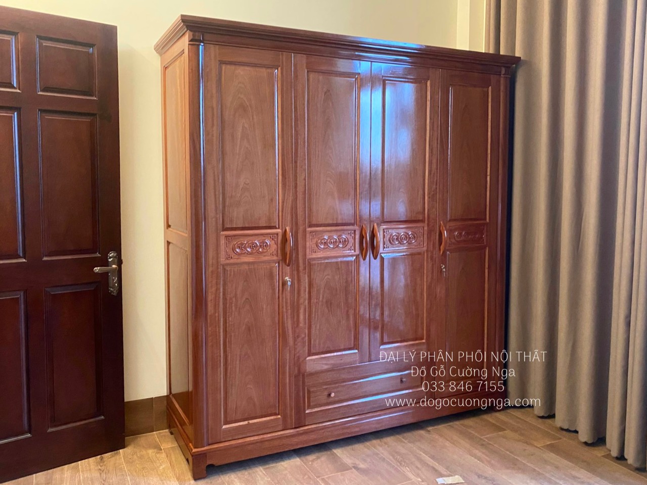 Tủ quần áo gỗ xoan đào 4 cánh giá rẻ