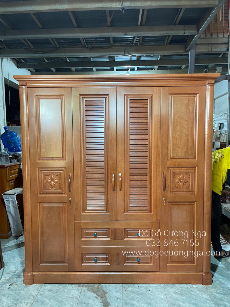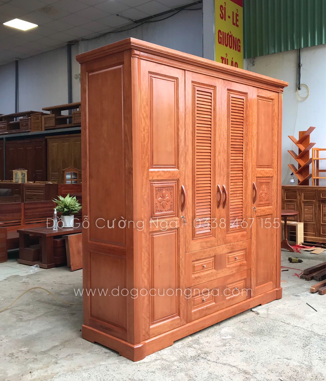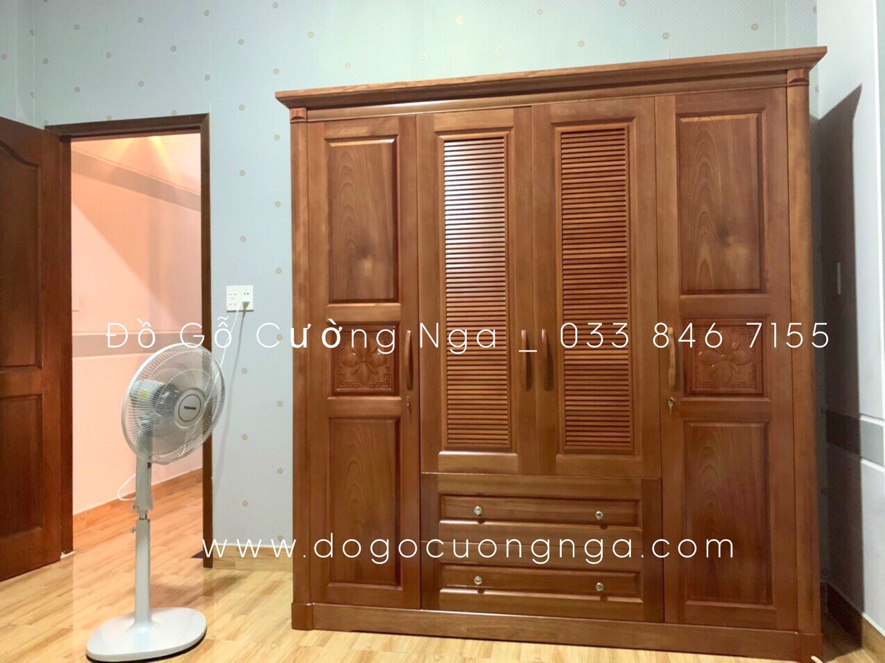 Tủ áo gỗ xoan đào 4 cánh cao cấp giao khách