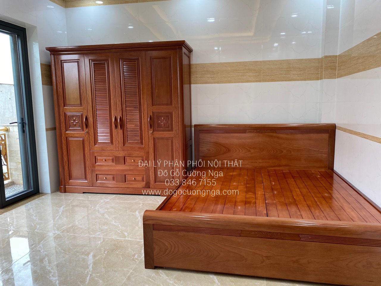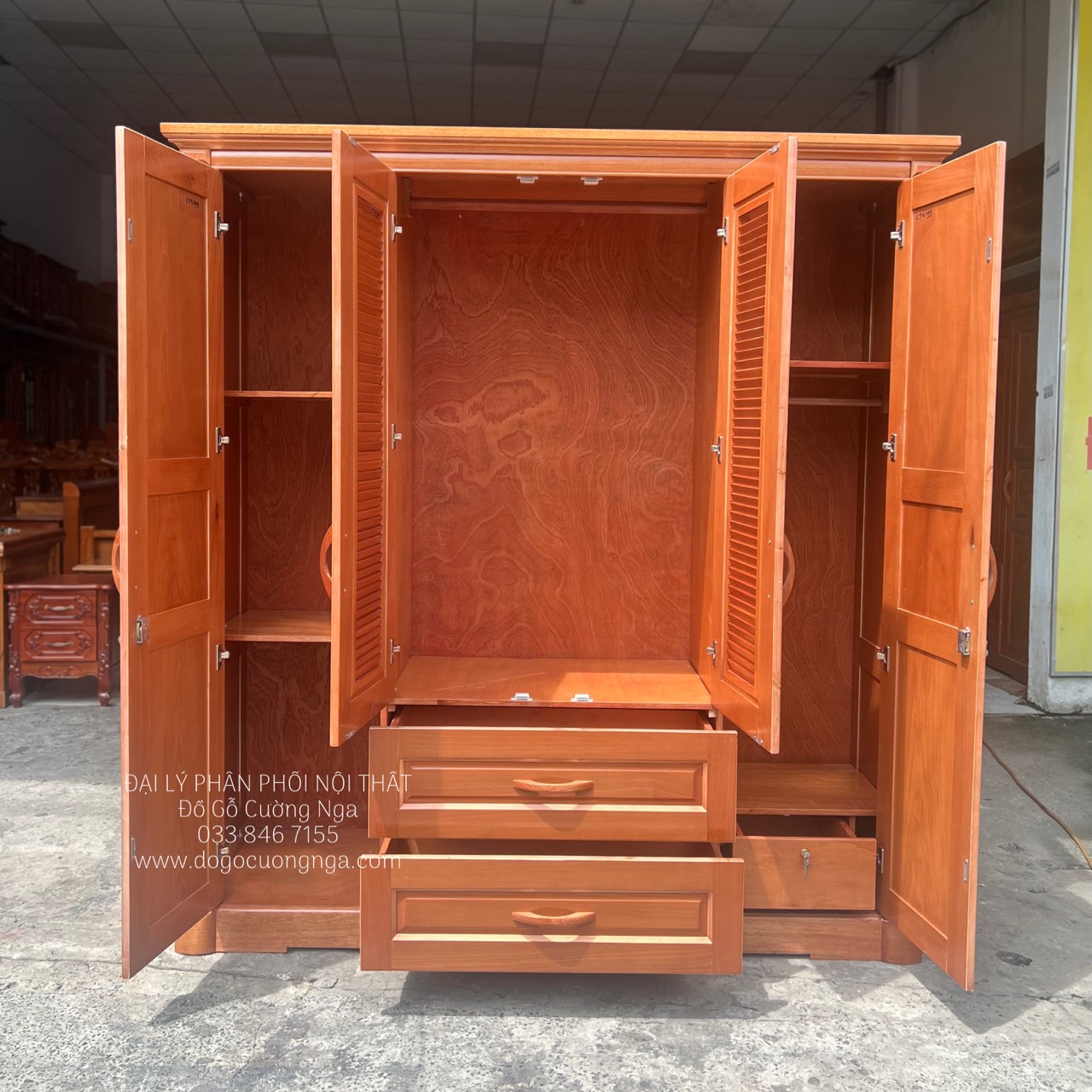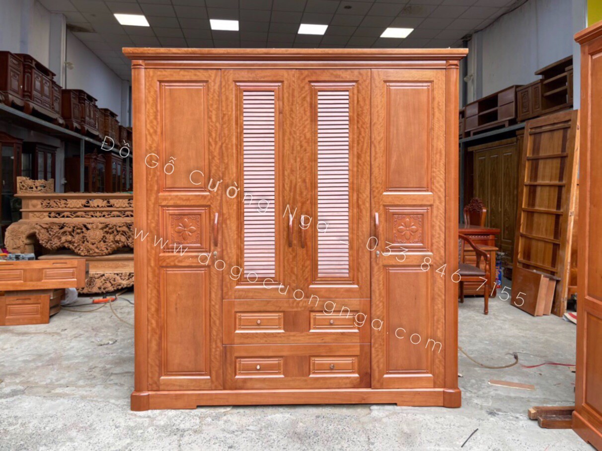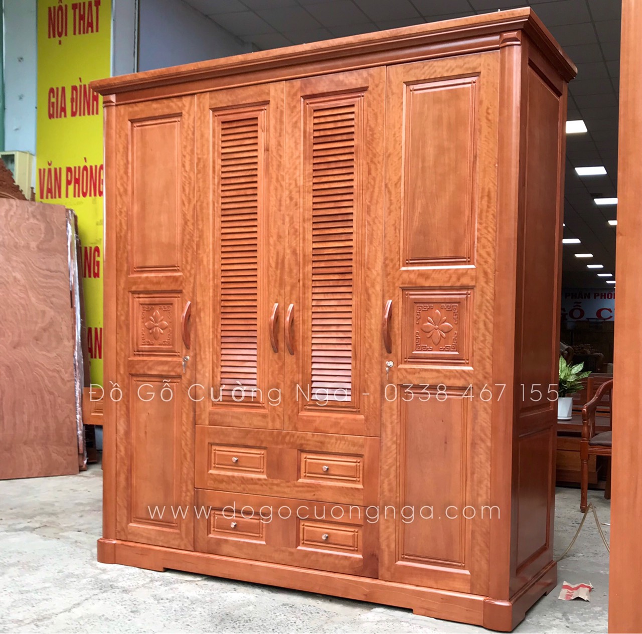Tủ áo gỗ xoan đào 4 cánh cao cấp giao khách