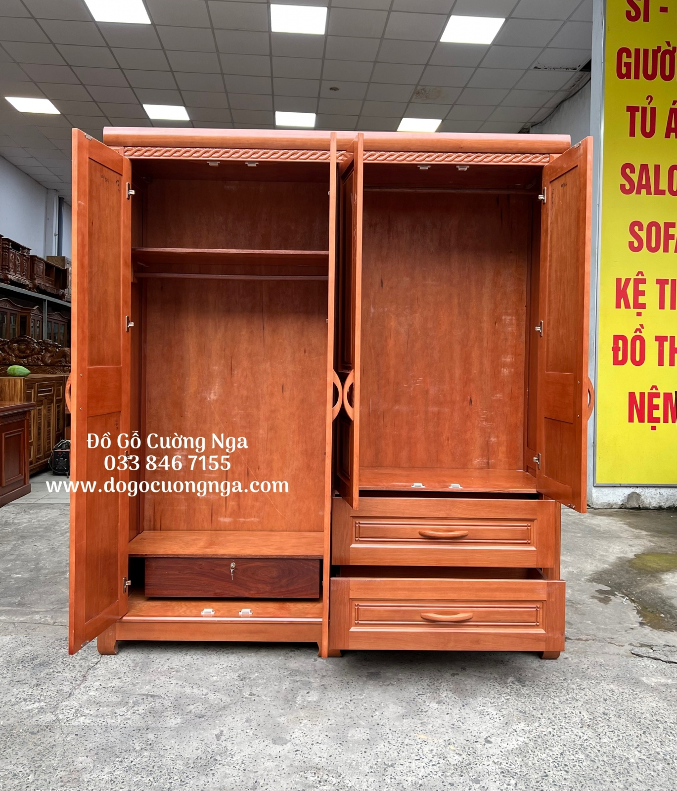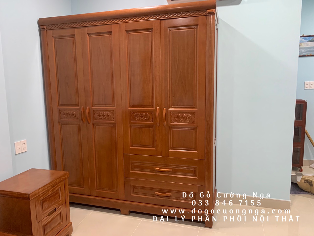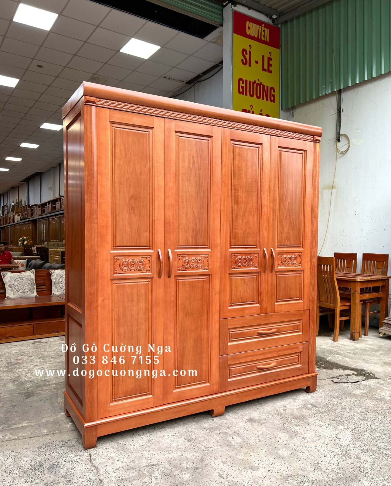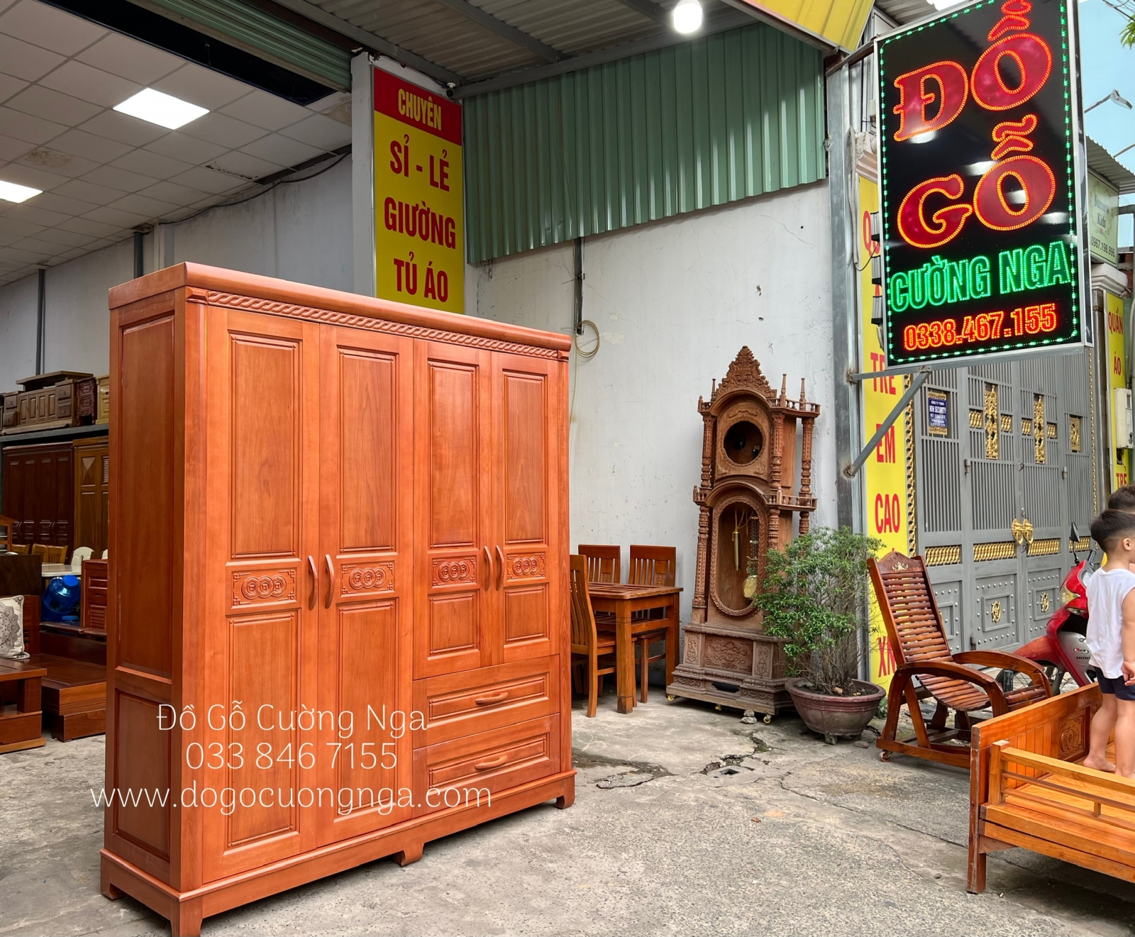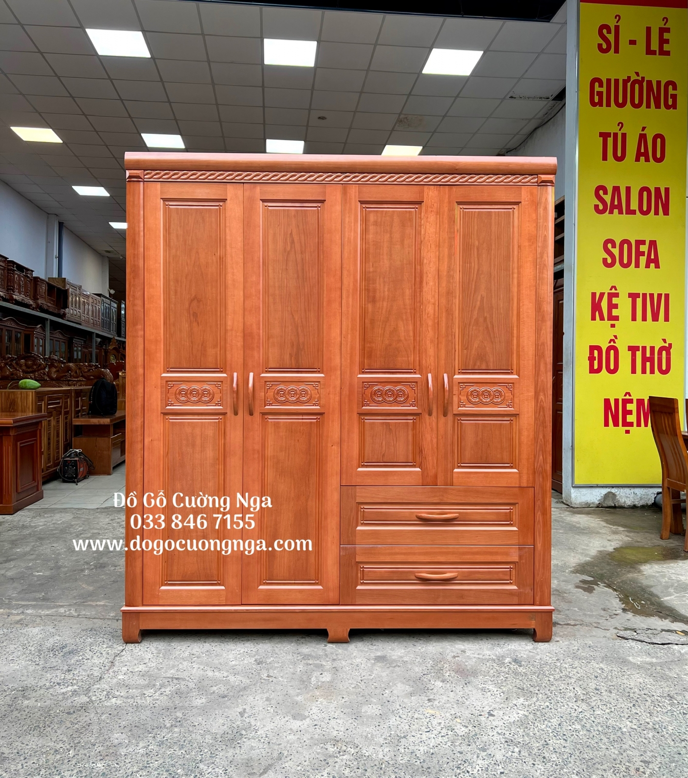 Tủ Quần Áo Gỗ Xoan Đào 4 Cánh Hiện Đại - Đồng Tiền