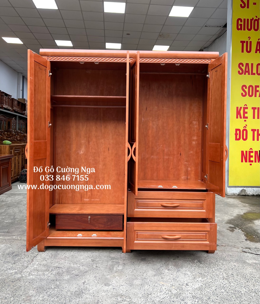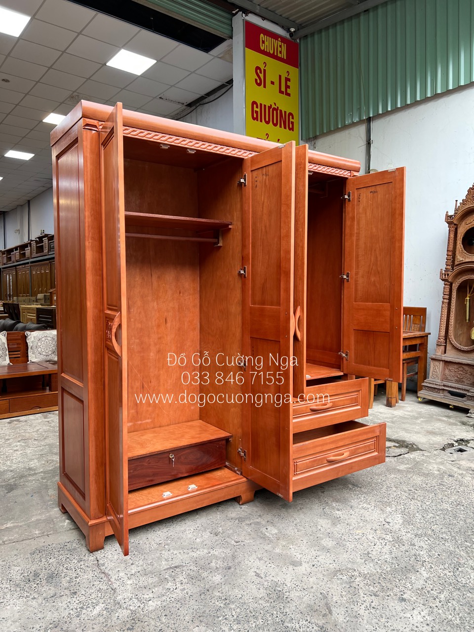 Tủ Quần Áo Gỗ Xoan Đào 4 Cánh Mở Cao Cấp