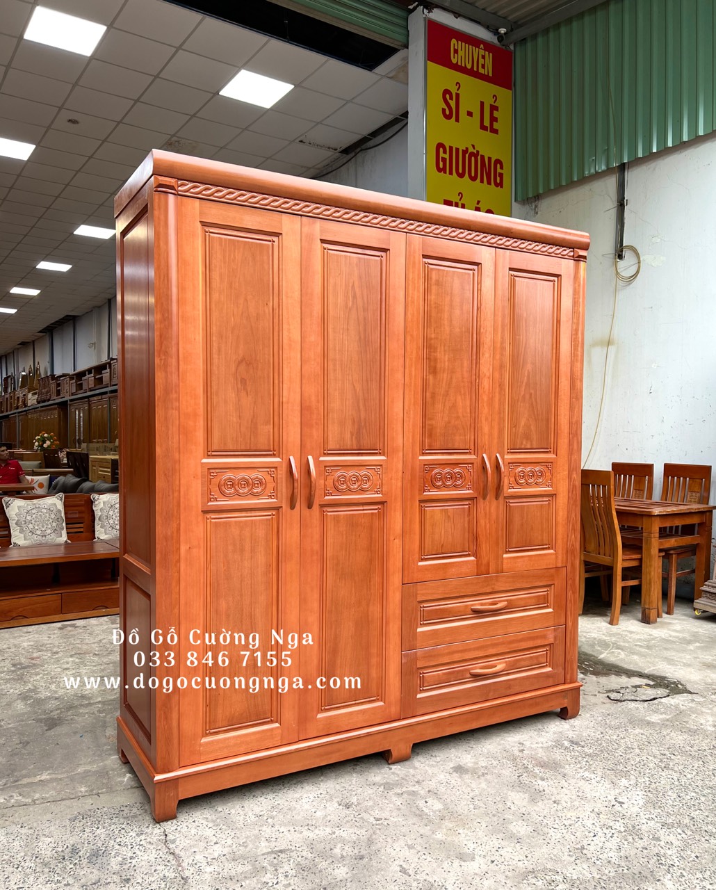 Tủ áo gỗ xoan đào 4 cánh cao cấp