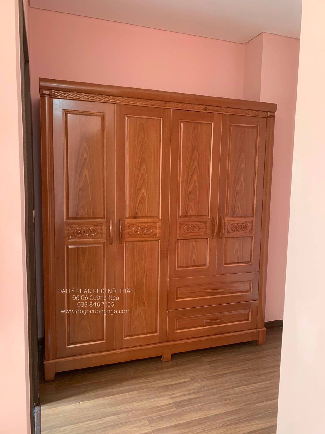 Tủ quần áo gỗ xoan đào 4 cánh hiện đại