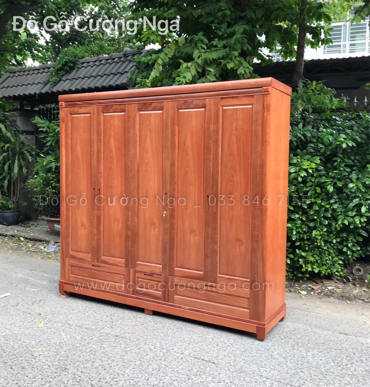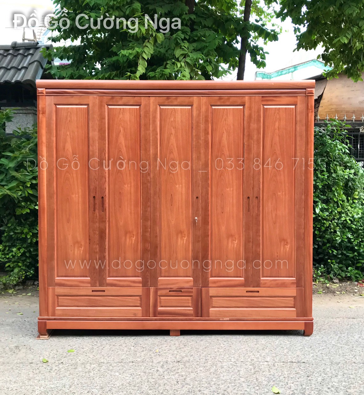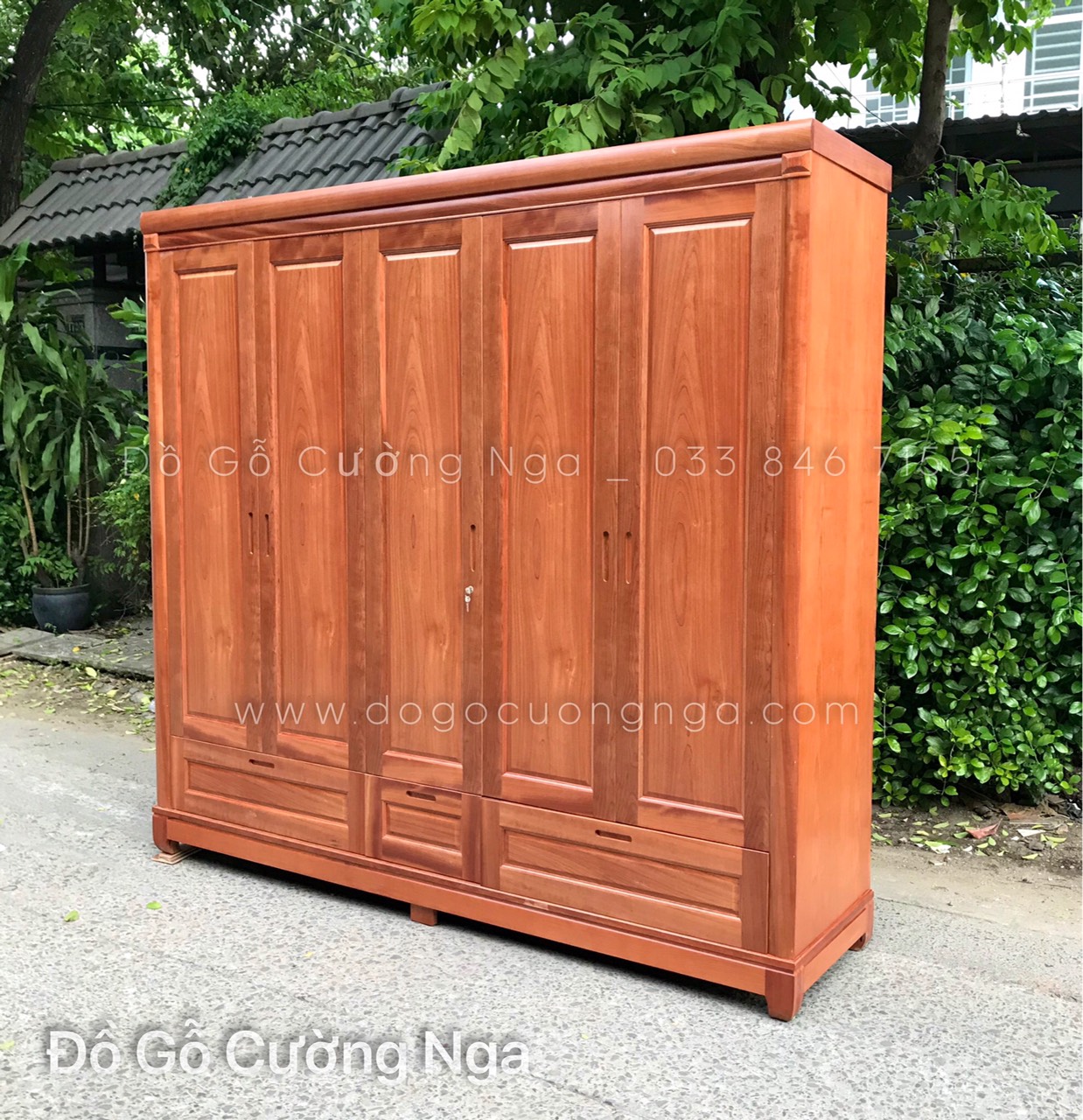 Thực tế mẫu tủ quần áo gỗ xoan đào 5 cánh