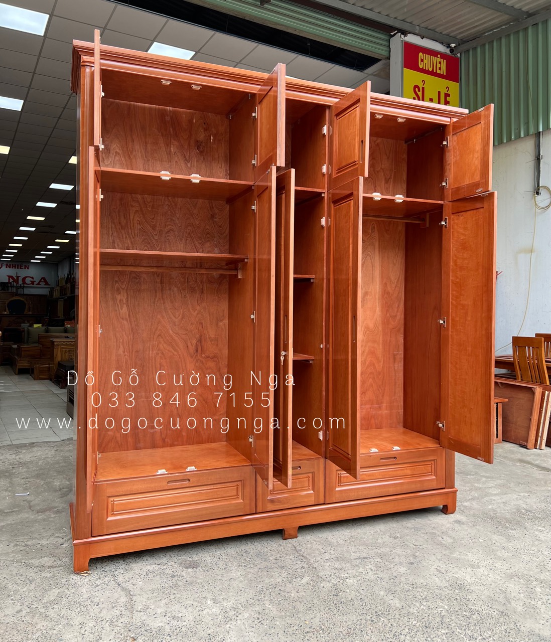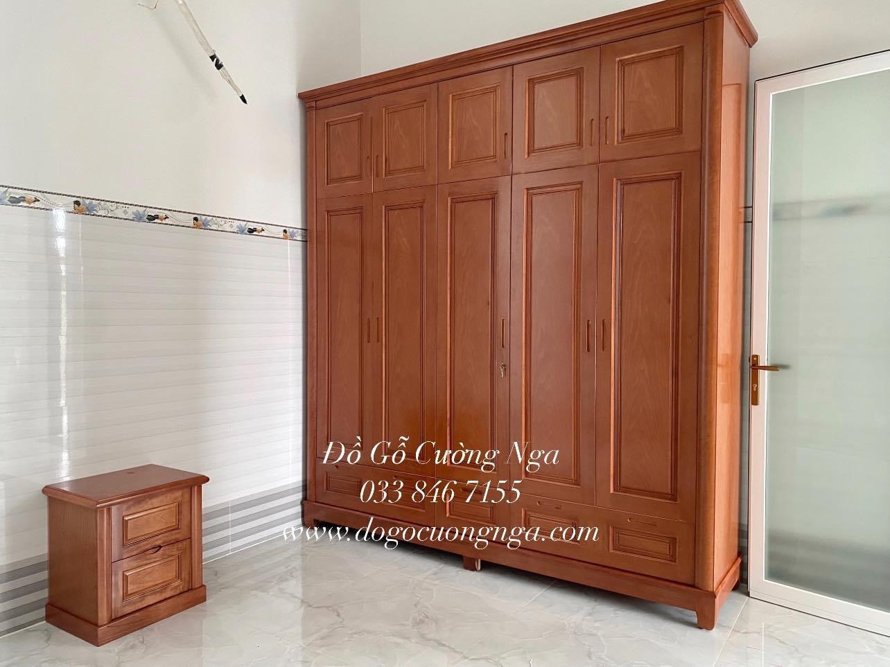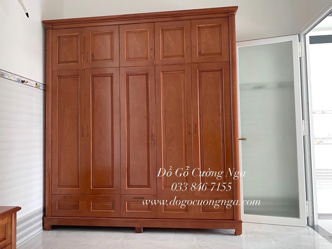 Tủ áo gỗ xoan đào 5 cánh 2 tầng giao khách