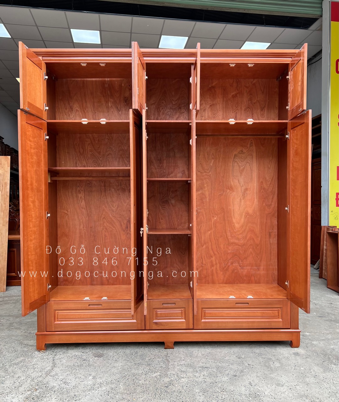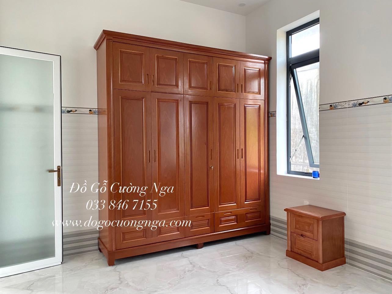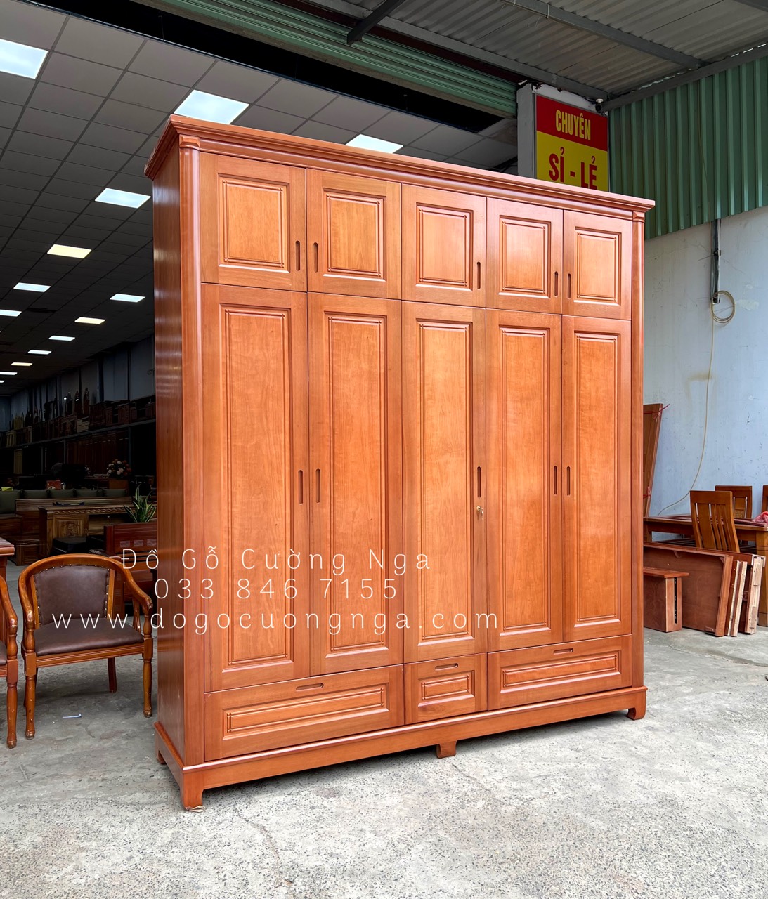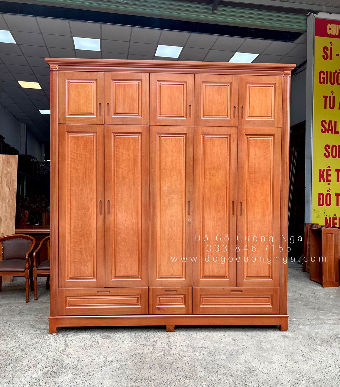 Tủ áo gỗ xoan đào 5 cánh 2 tầng giao khách