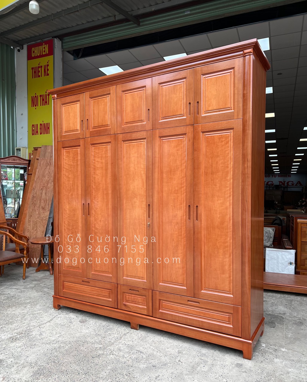 Tủ áo gỗ xoan đào 5 cánh 2 tầng