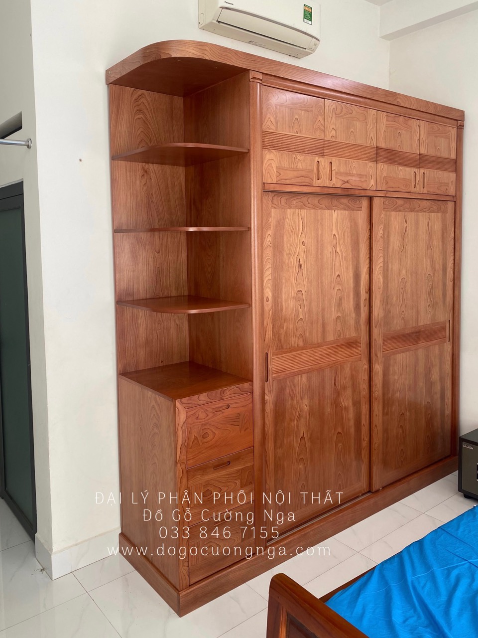 Tủ Quần Áo Gỗ Xoan Đào Cửa Lùa Cao Kịch Trần Hiện Đại