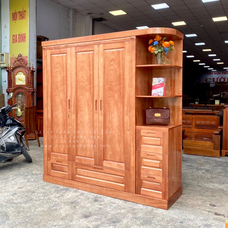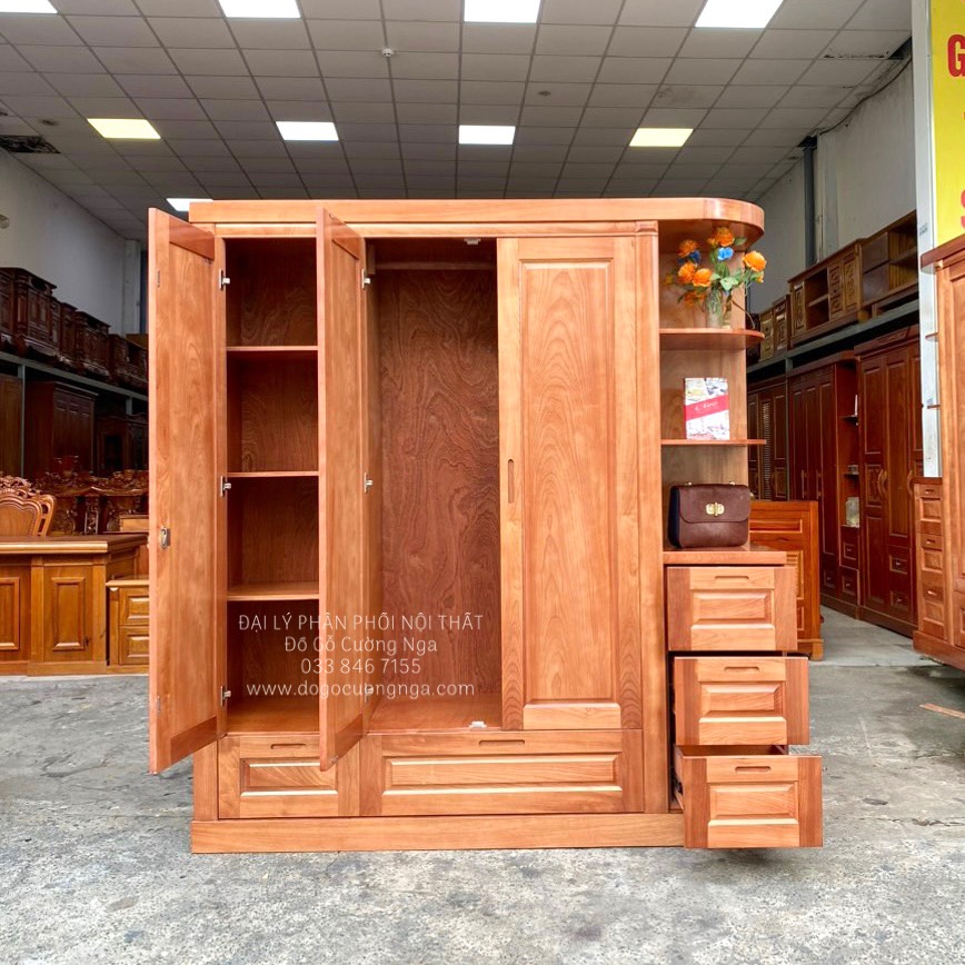 Tủ Quần Áo Gỗ Xoan Đào 3 Cánh Góc Trang Trí Đẹp Giá Rẻ