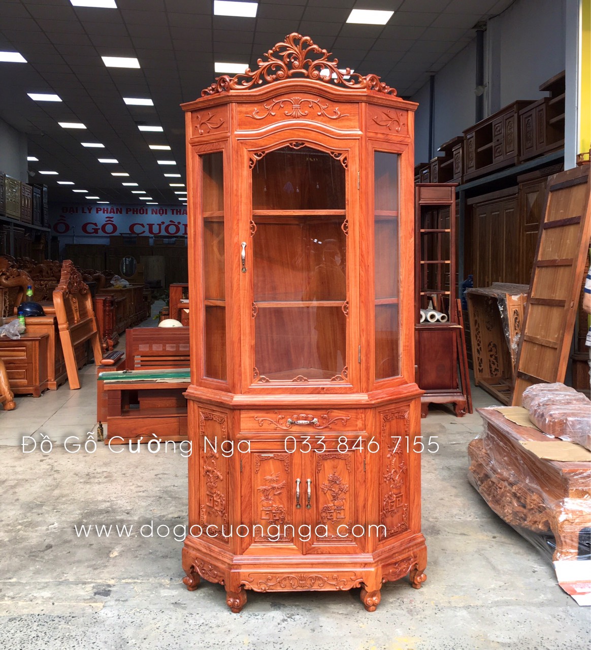Tủ rượu là món đồ không thiếu trong phòng khách của dân chơi đồ gỗ. Ngoài chức năng chính là để rượu, Tủ rượu gỗ hương góc kiểu góc còn dùng để chứa các đồ vật khác để trang trí và chính nó cũng là vật trang trí cho phòng khách của mọi nhà.