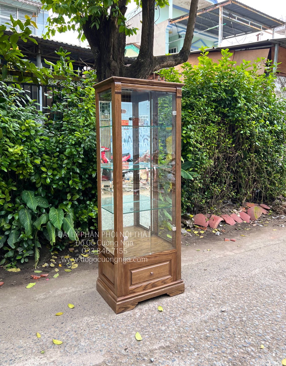 Tủ Rượu Gỗ Sồi Nga 65cm Lau Màu Óc Chó TG 14.3