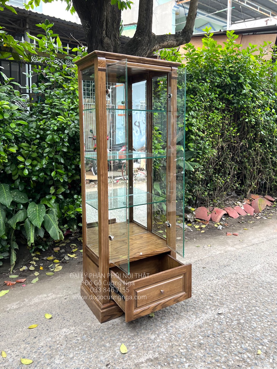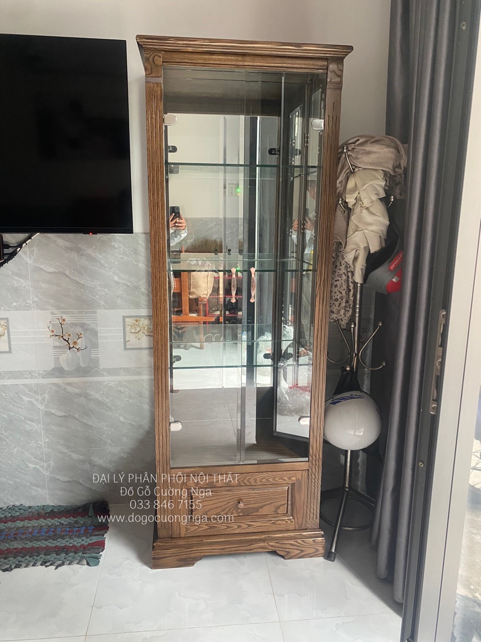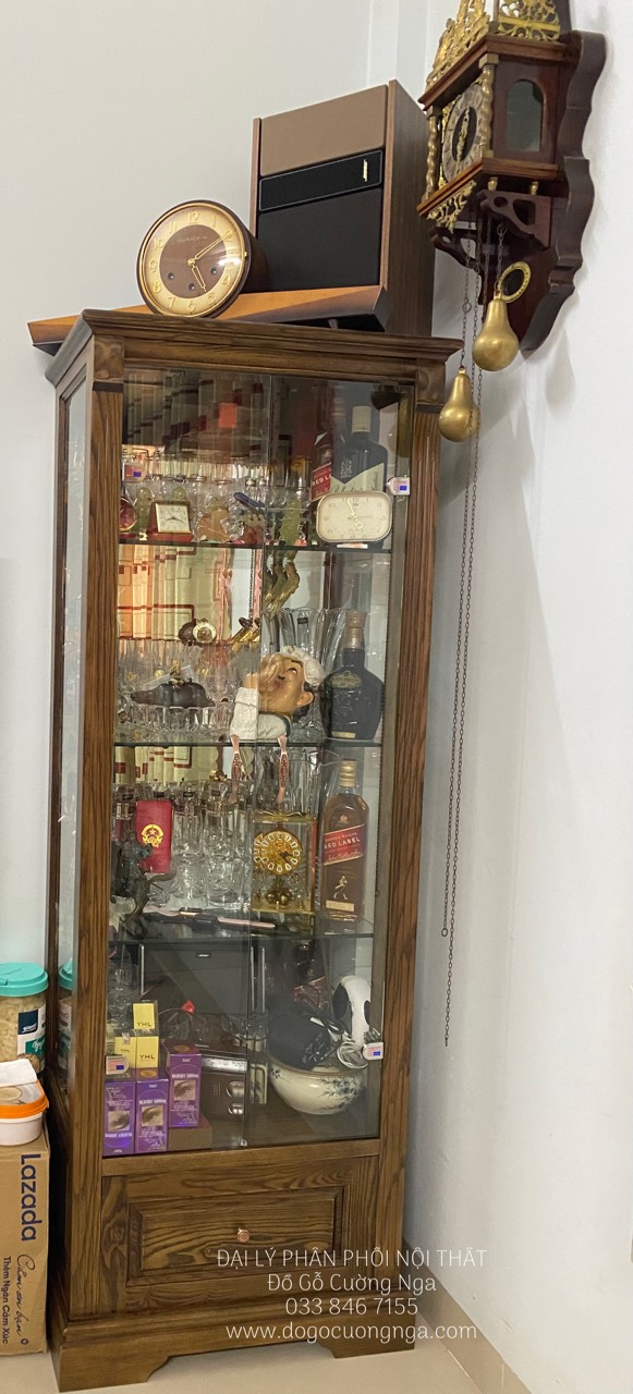 Tủ rượu gỗ sồi lau màu óc chó