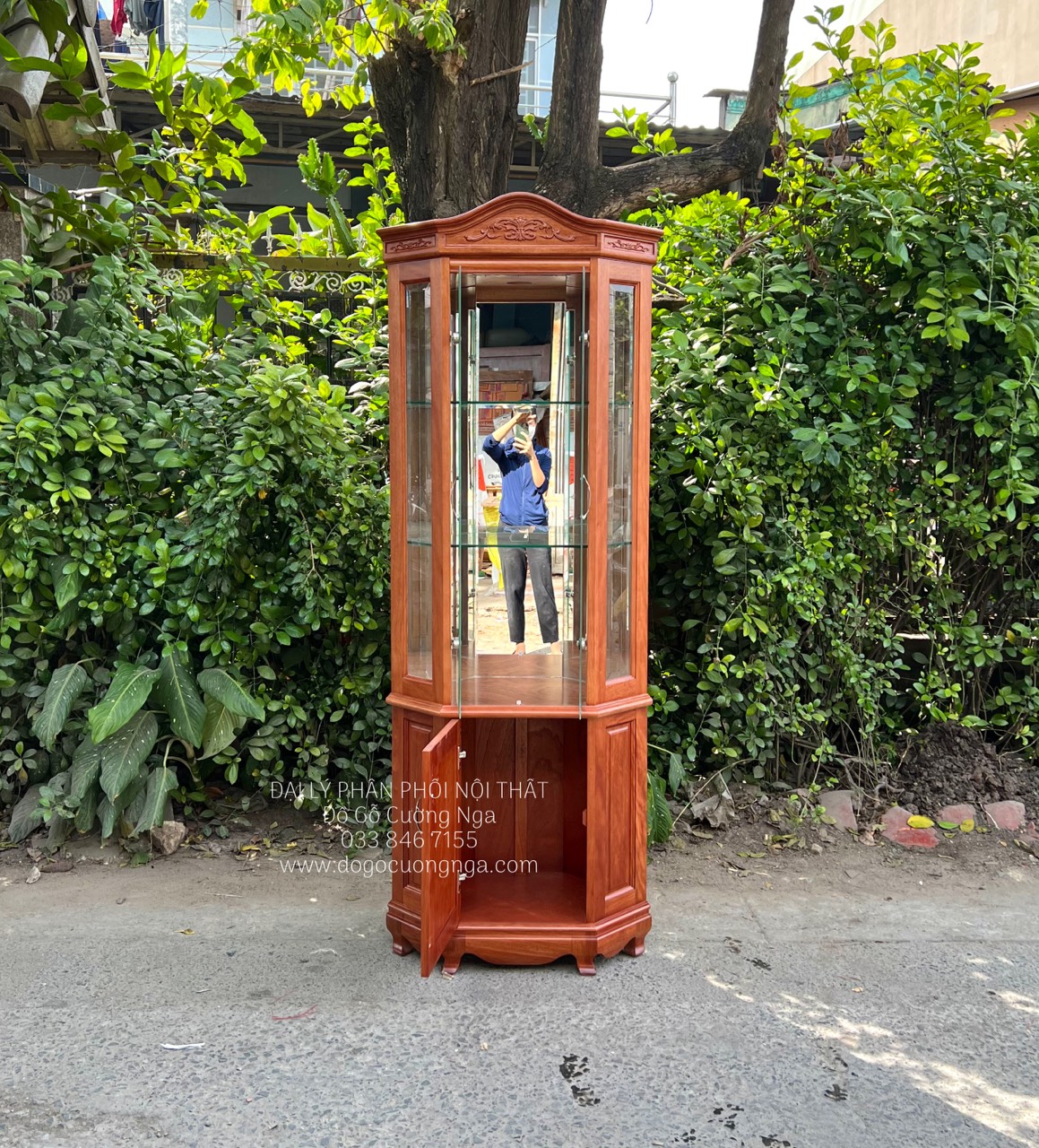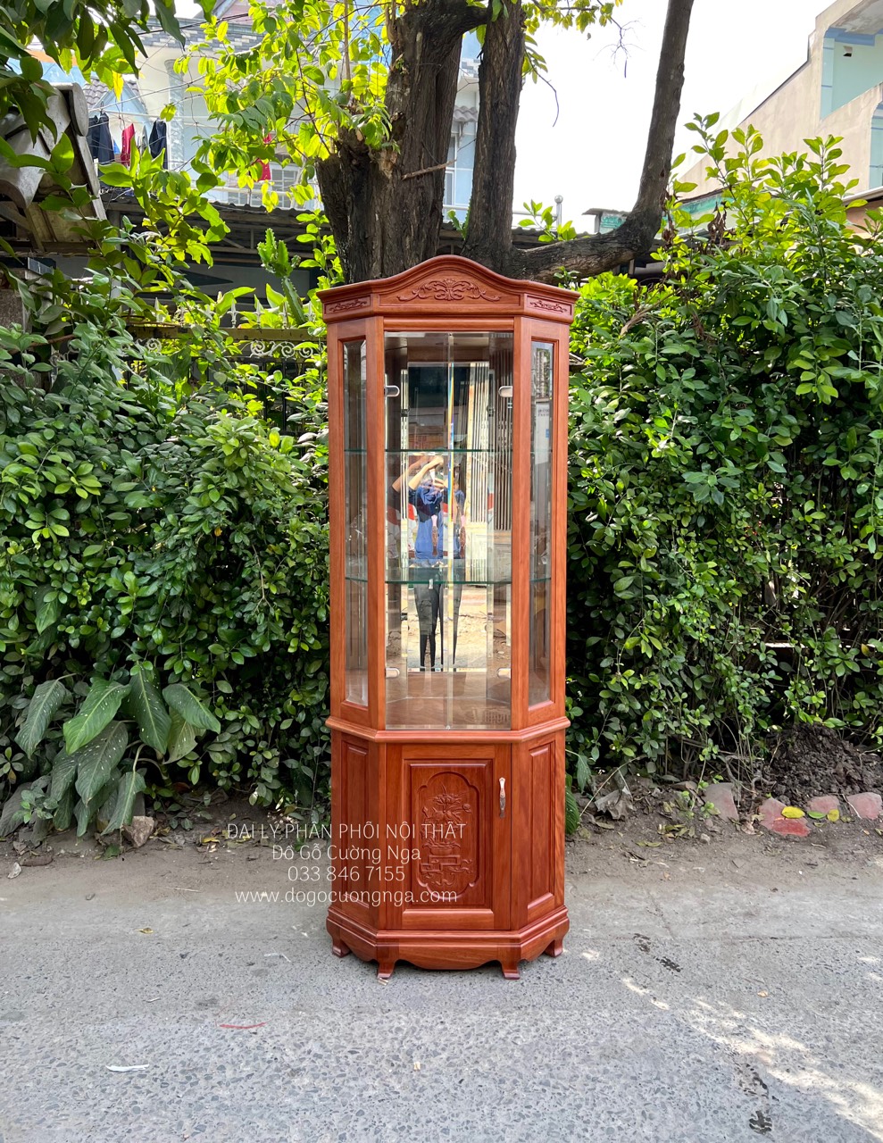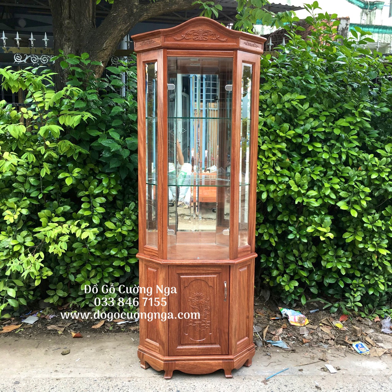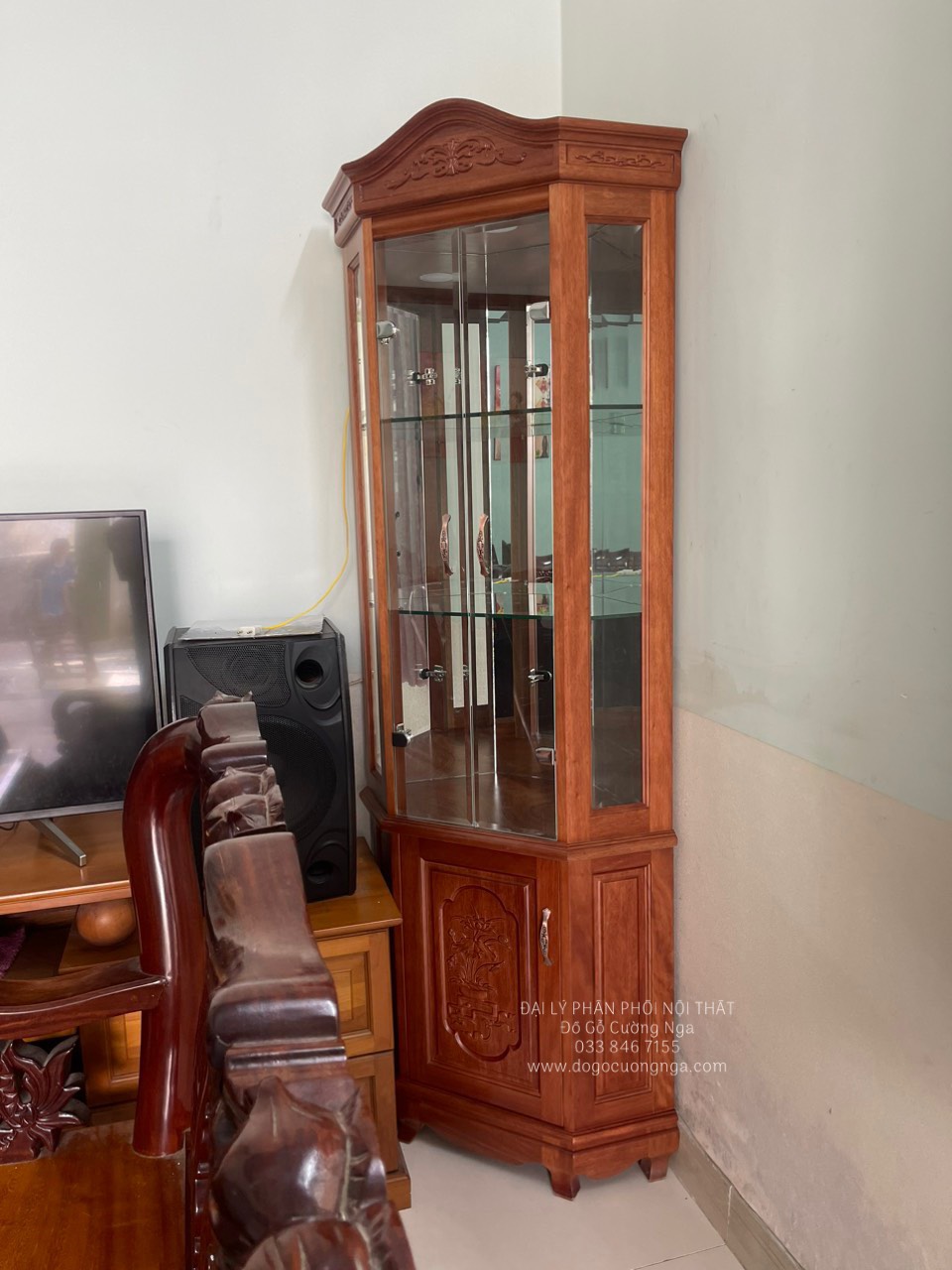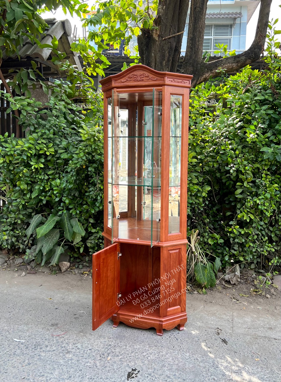 Tủ rượu,tủ ly trang trí gỗ xoan đào góc 50 - TG 018