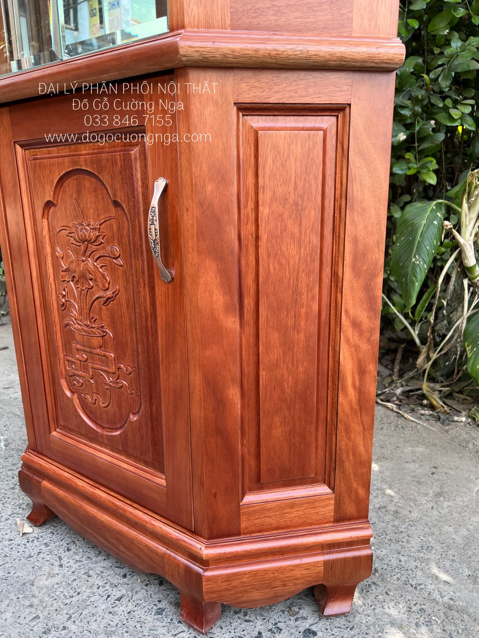 Chi tiết tủ rượu góc gỗ xoan đào
