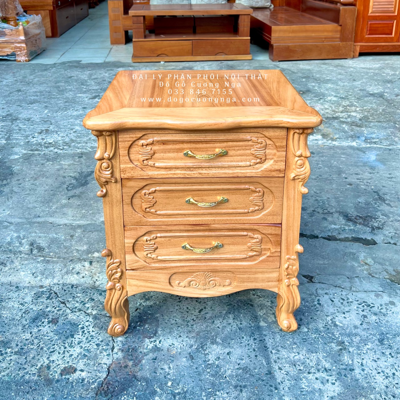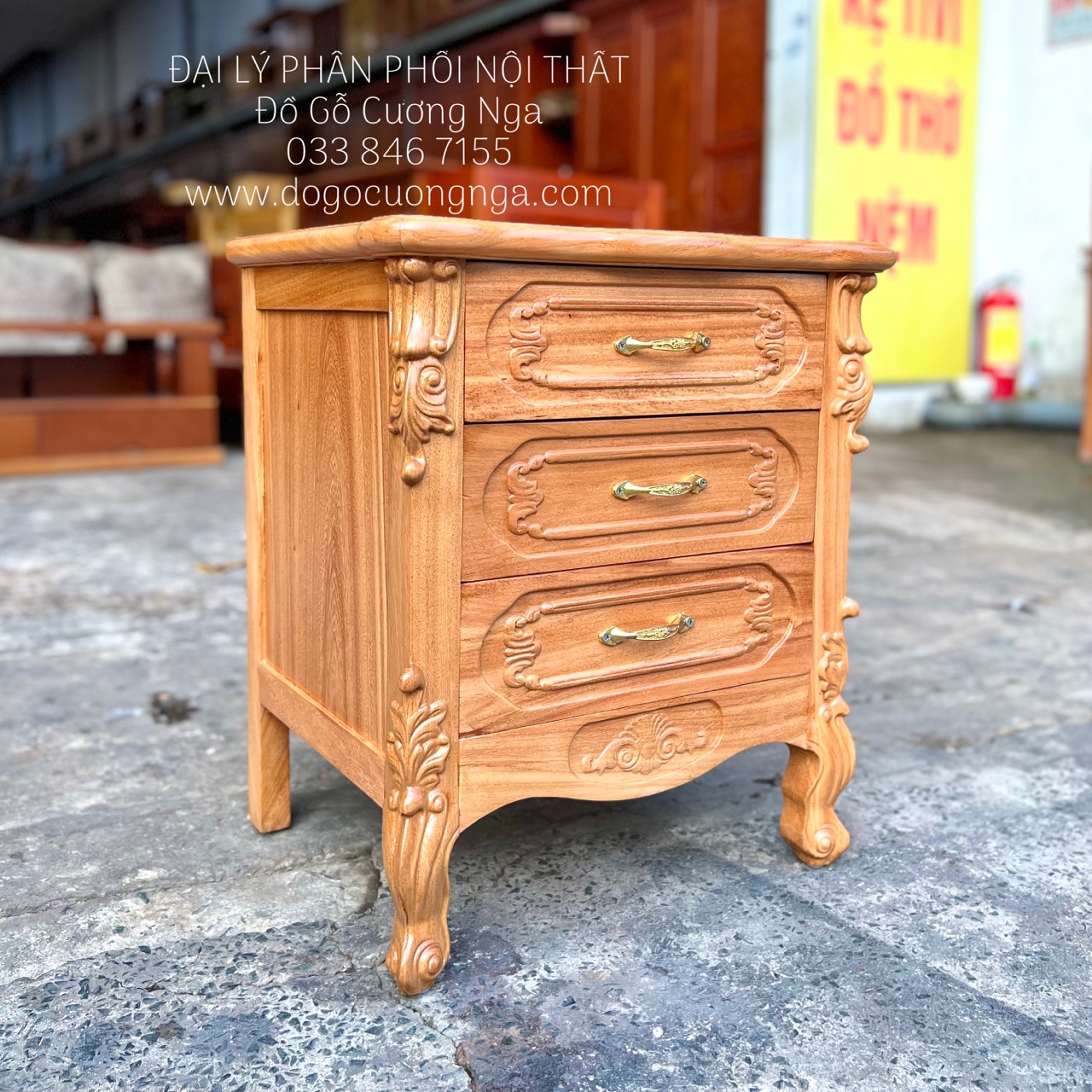 Tủ đầu giường được làm bằng gỗ gõ đỏ, với kích thước nhỏ gọn tiện dụng, tủ được thiết kế với 3 ngăn kéo tiện lợi . Một sản phẩm rất tiện dụng khi lưu trữ những vật phẩm nhỏ gọn đem lại sự thoải mái và gọn gàng cho căn phòng.