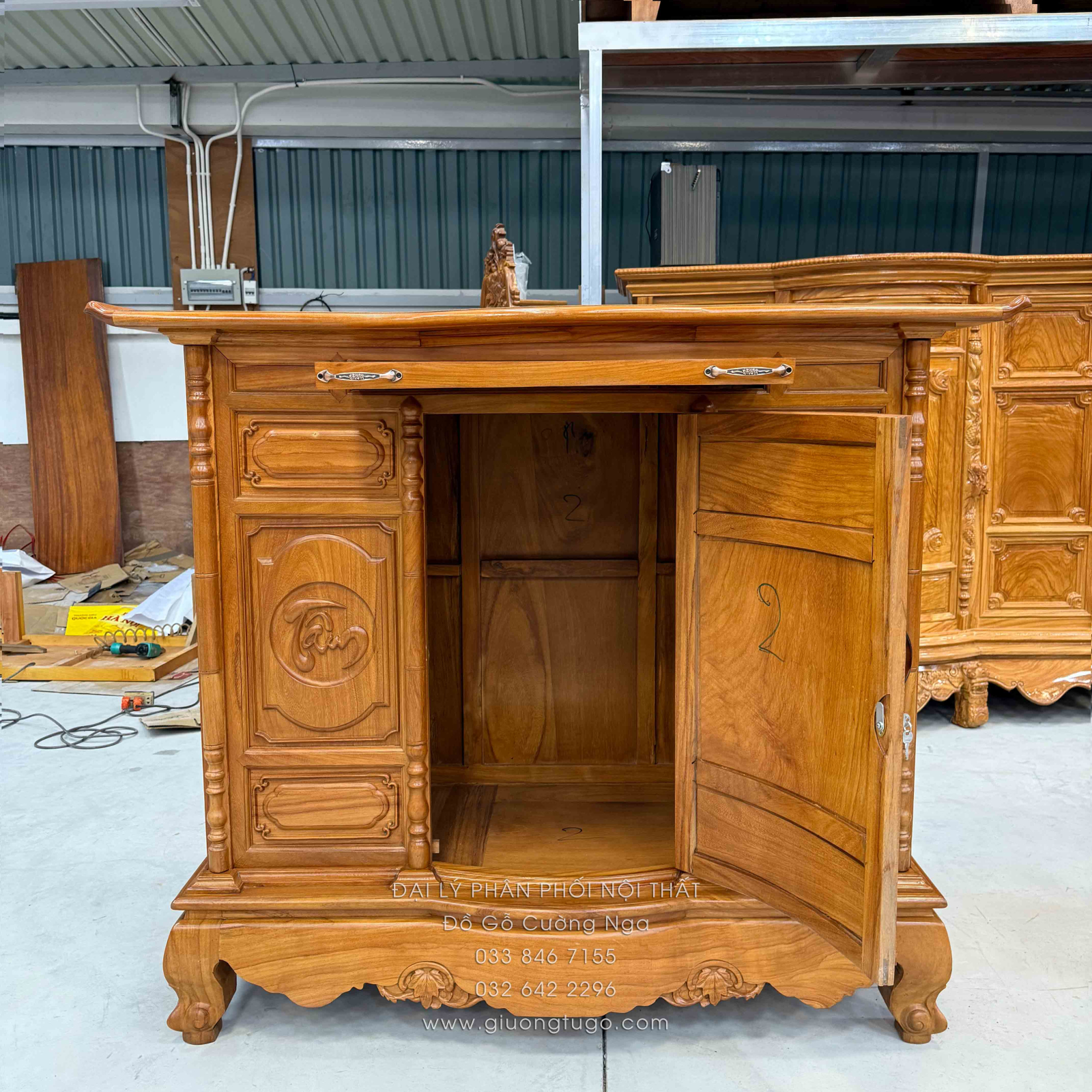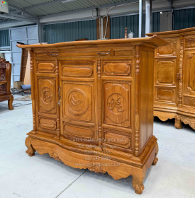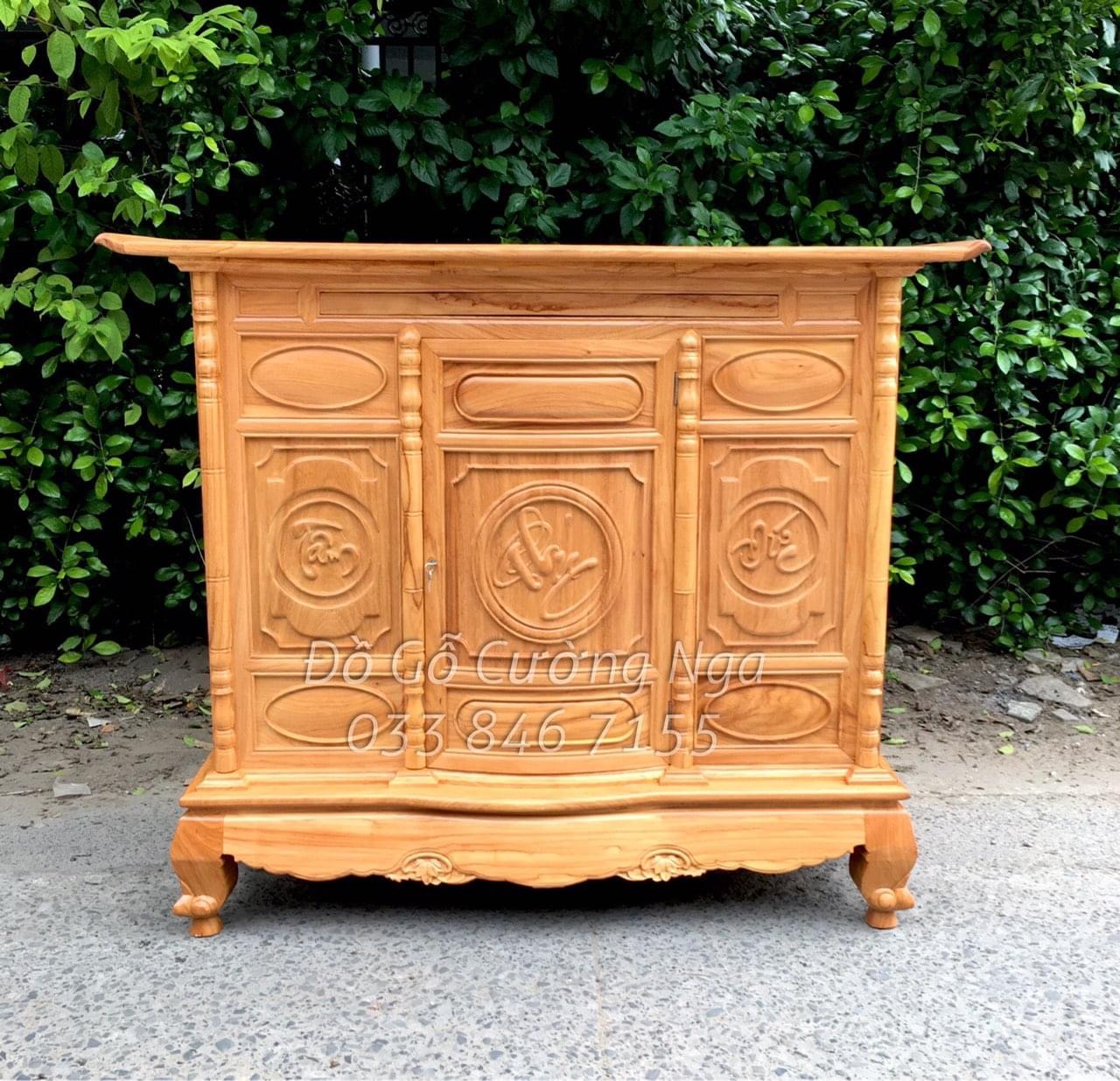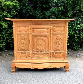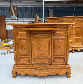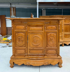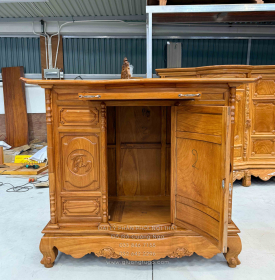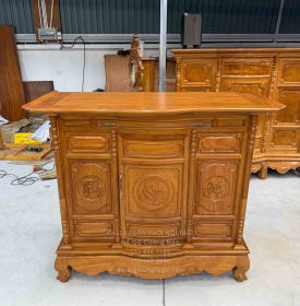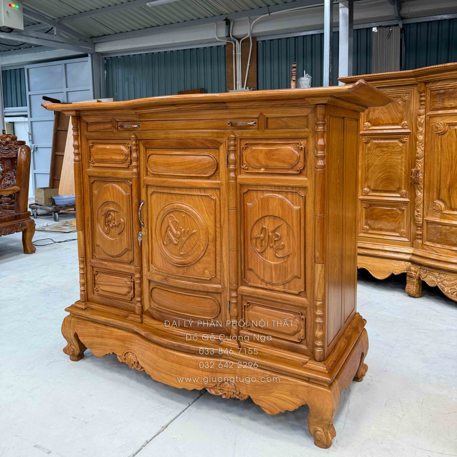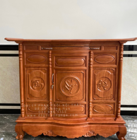 Tủ thờ gỗ gõ đỏ 1m53 cánh cong - trạm chữ BT 014