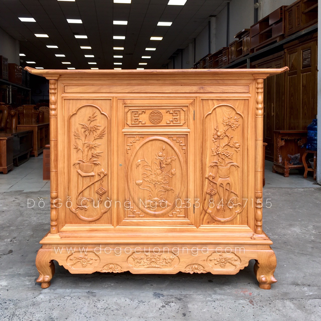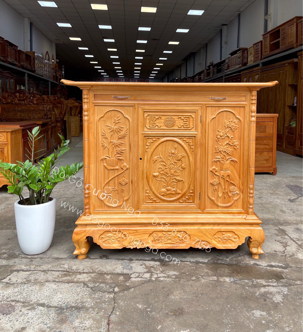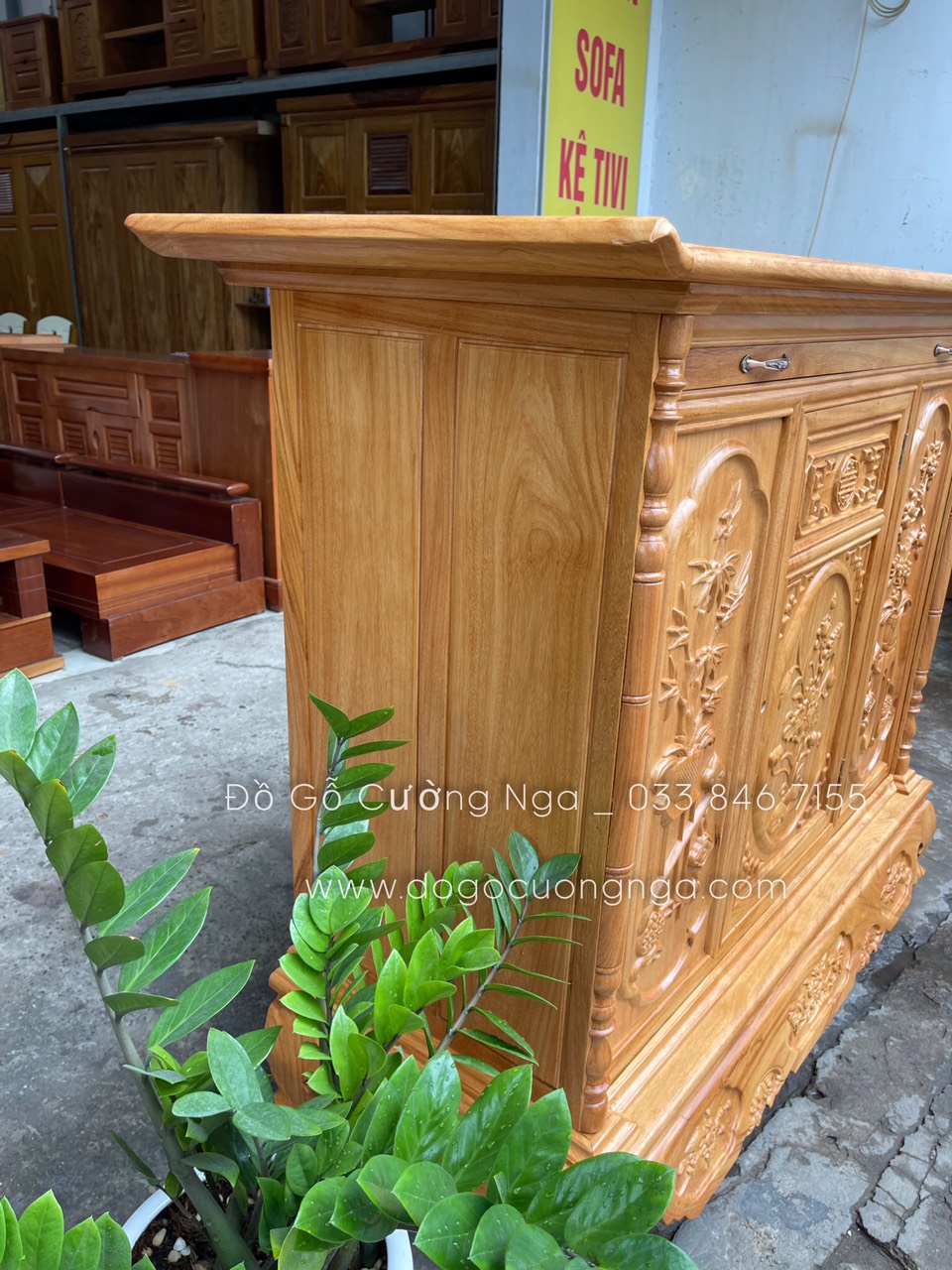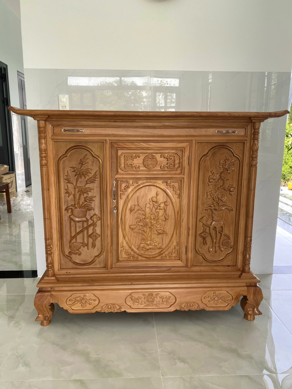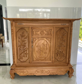 Tủ thờ gỗ gõ đỏ 1m53 - chạm sen cánh phẳng BT 013
