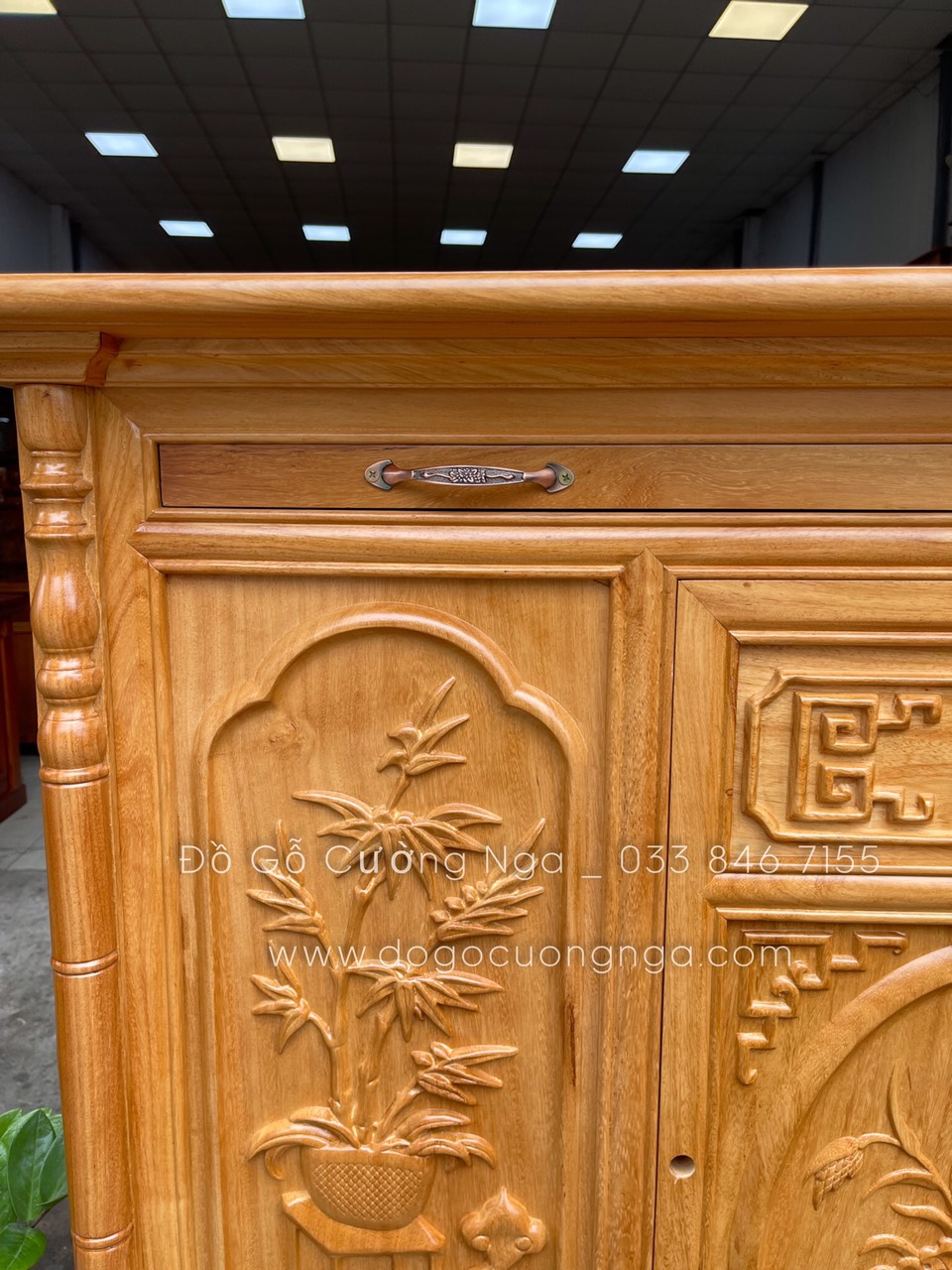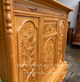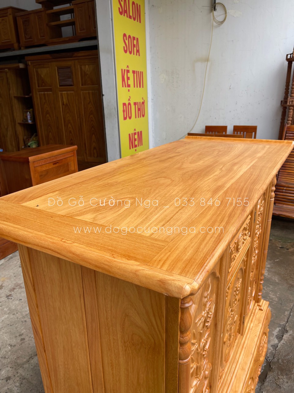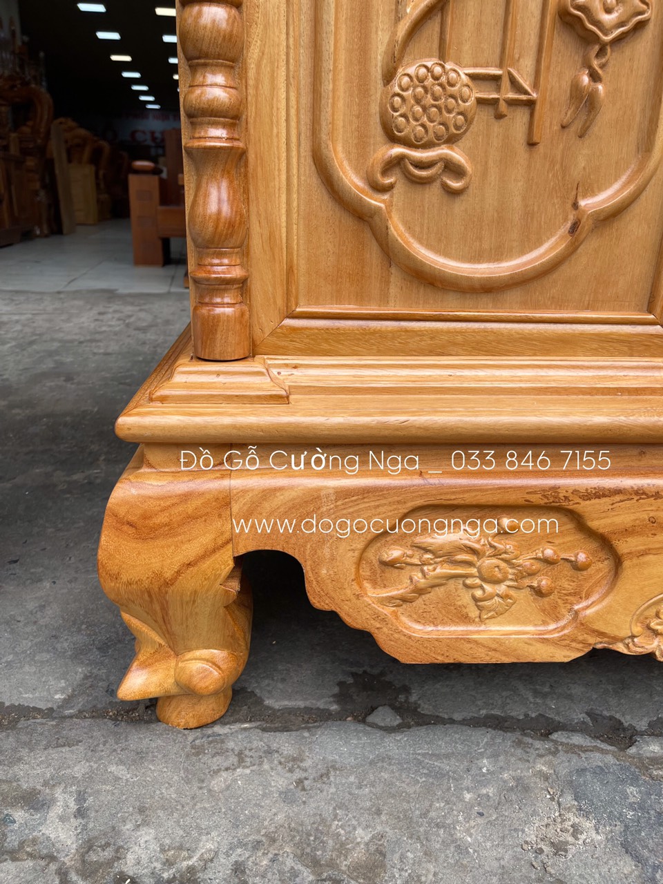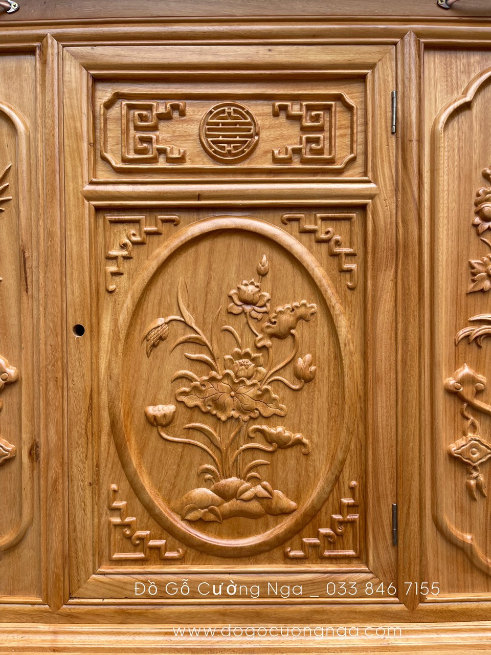 Tủ thờ gỗ gõ đỏ 1m53 - chạm sen cánh phẳng BT 013